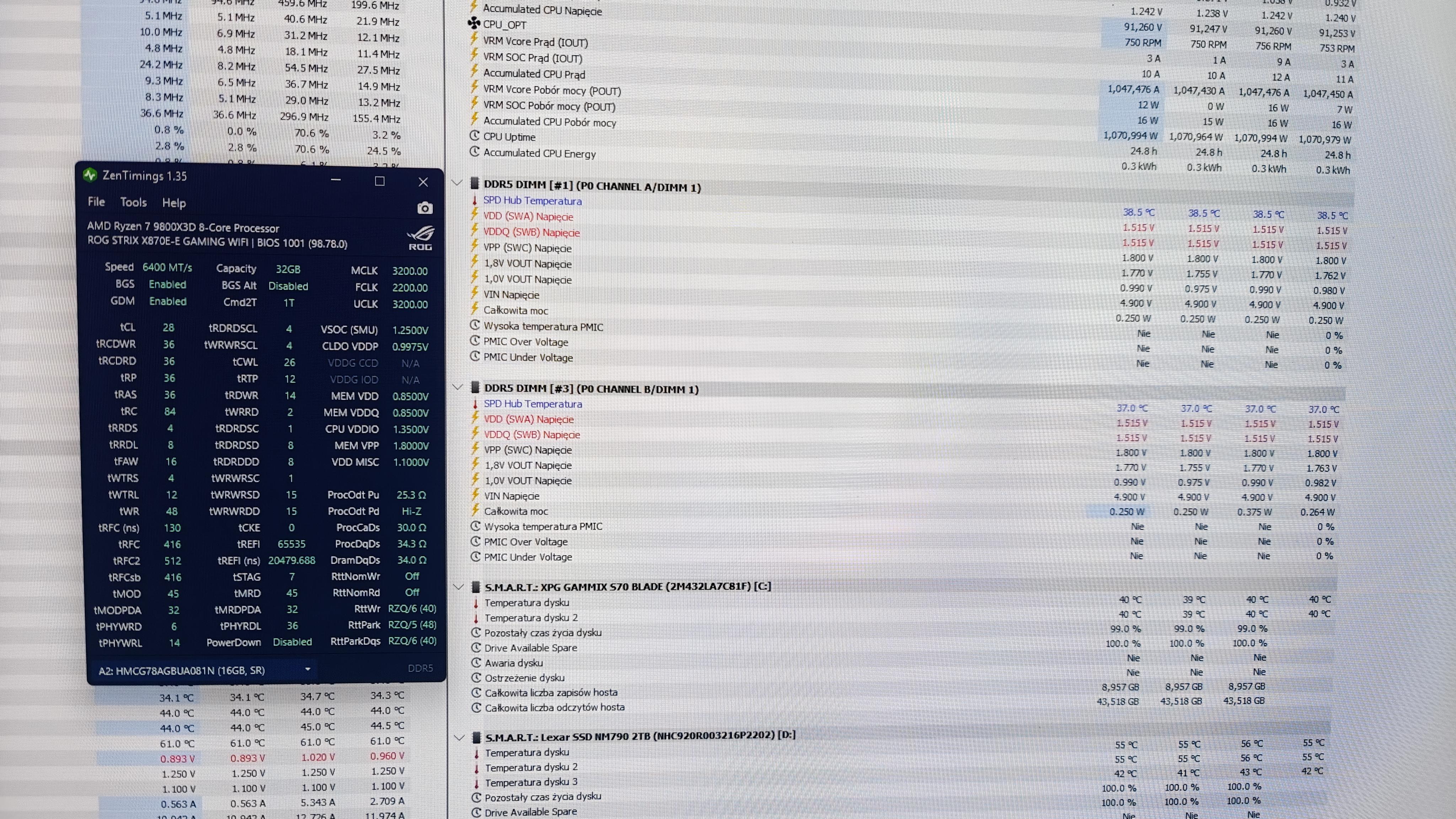 Jak masz hynixy adie w lexarach i sztuki jak jeszcze ta firma nie wypuszczała szybszych ramow niż 6000/6400 to masz ogromną szansę na bardzo fajne sztuki tych lexarow . Nie powinno być problemu z 6200cl28 i 8000cl36 na dość niskich napięciach