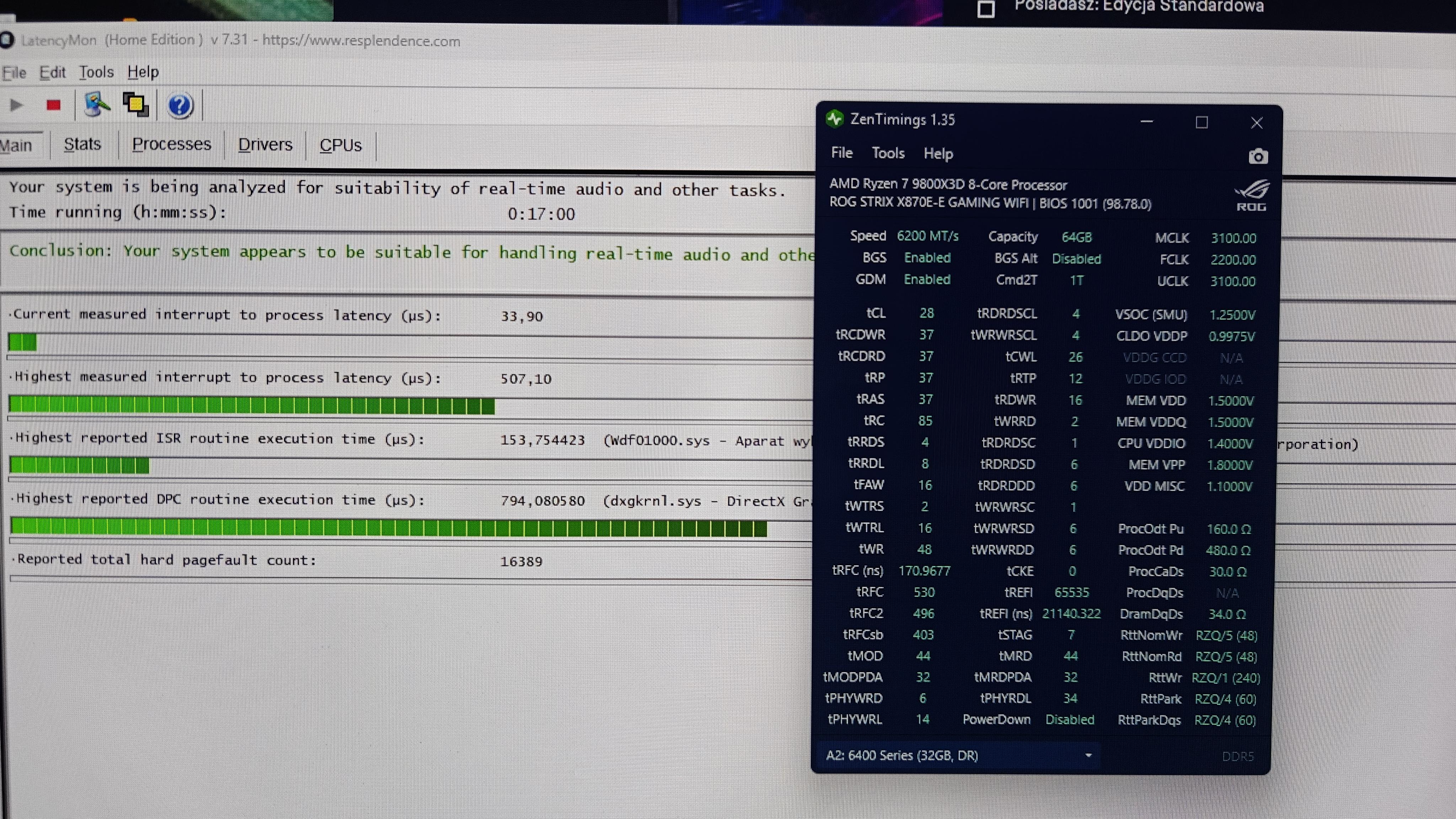 6400cl28 + fclk2200 stabilne się wydaję, tm5, vt3 i granie z latencymon w tle ;).