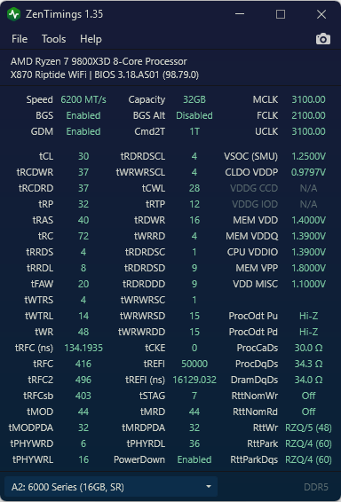 8000CL34 da sie myśle ustabilizować max -34,wszystko przechodzi -44 poza VT3, VT3 robi duży narzut na procesor i tak ostatecznie roznica w -33 8000, -37 6120Mhz. Ciężko powiedzieć co lepsze. Energii jednak mniej bierze 8000, dlatego że SOC mozna znacząco obniżyć. Myślę, że jednak jest ciut lepsze dla procesora.