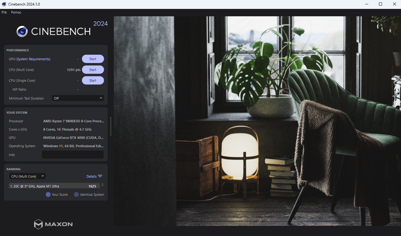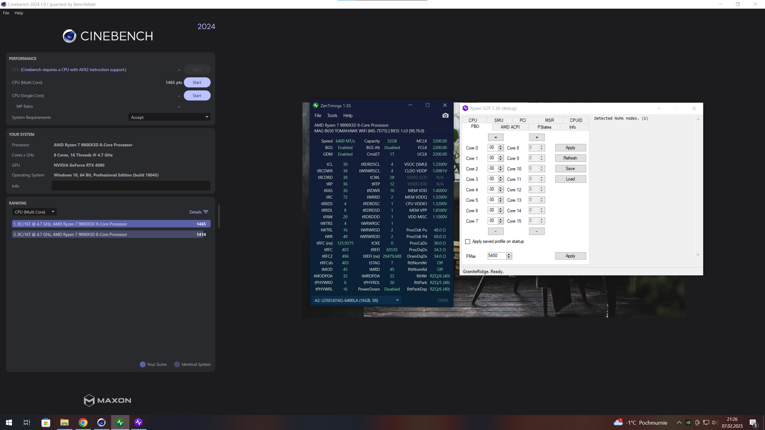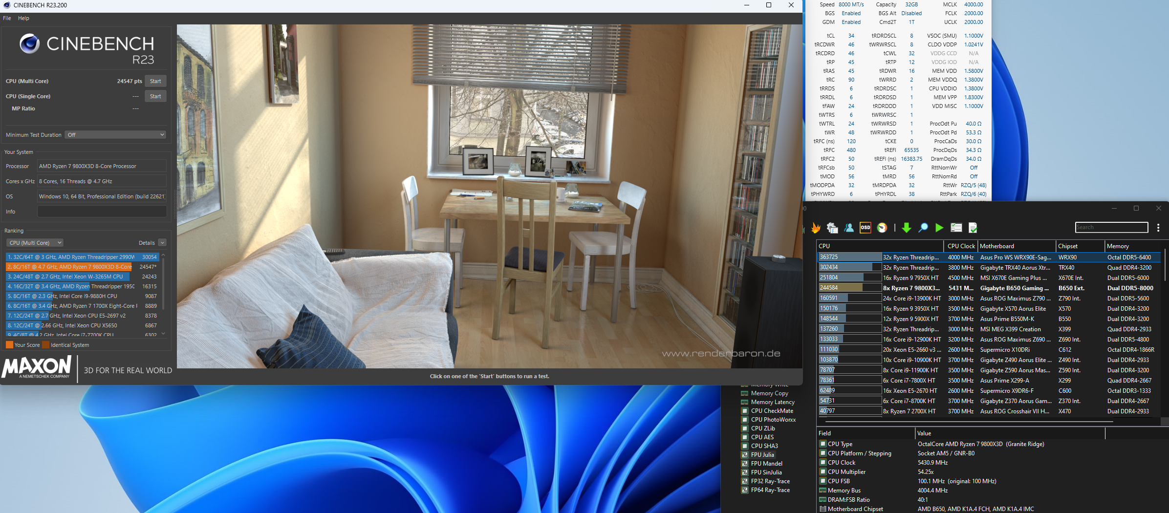 Tak wyglada niedropiące 5425Mhz w CB 23, 24550 przy 8000. Zatem trzymajacy Mhz 5225 9800x3d powinien miec okolo 23600pkt.