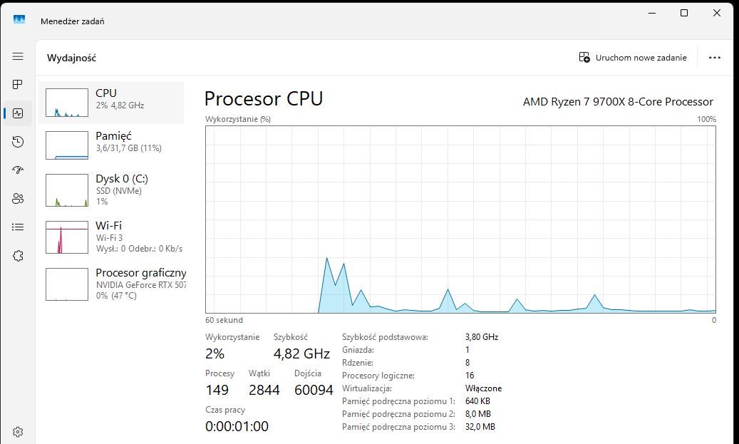 ASUS TUF GAMING B850M-PLUS WIFI. Tu powinno być 16 czy jest ok? W biosie jedynie zmienione na preferowany cache.
