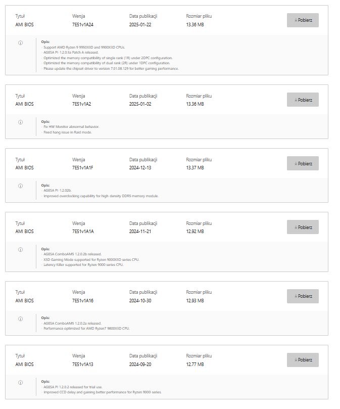 Do mojej płyty (AsRock x870e NOVA) wciąż bios 3.25 z 15 maja.