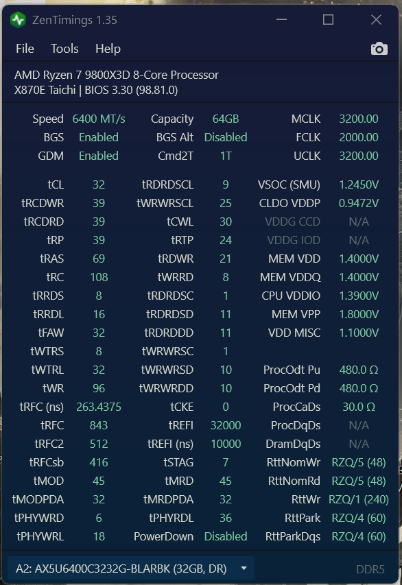 1.245V na 6400 no niezła sztuka :P jeszcze przy 64GB to juz w ogole. Porób jakies małe testy 2x16 vs 2x32 na tych samych nastawach i pokaz czy jest jakis sensy przechodzic na 2x32