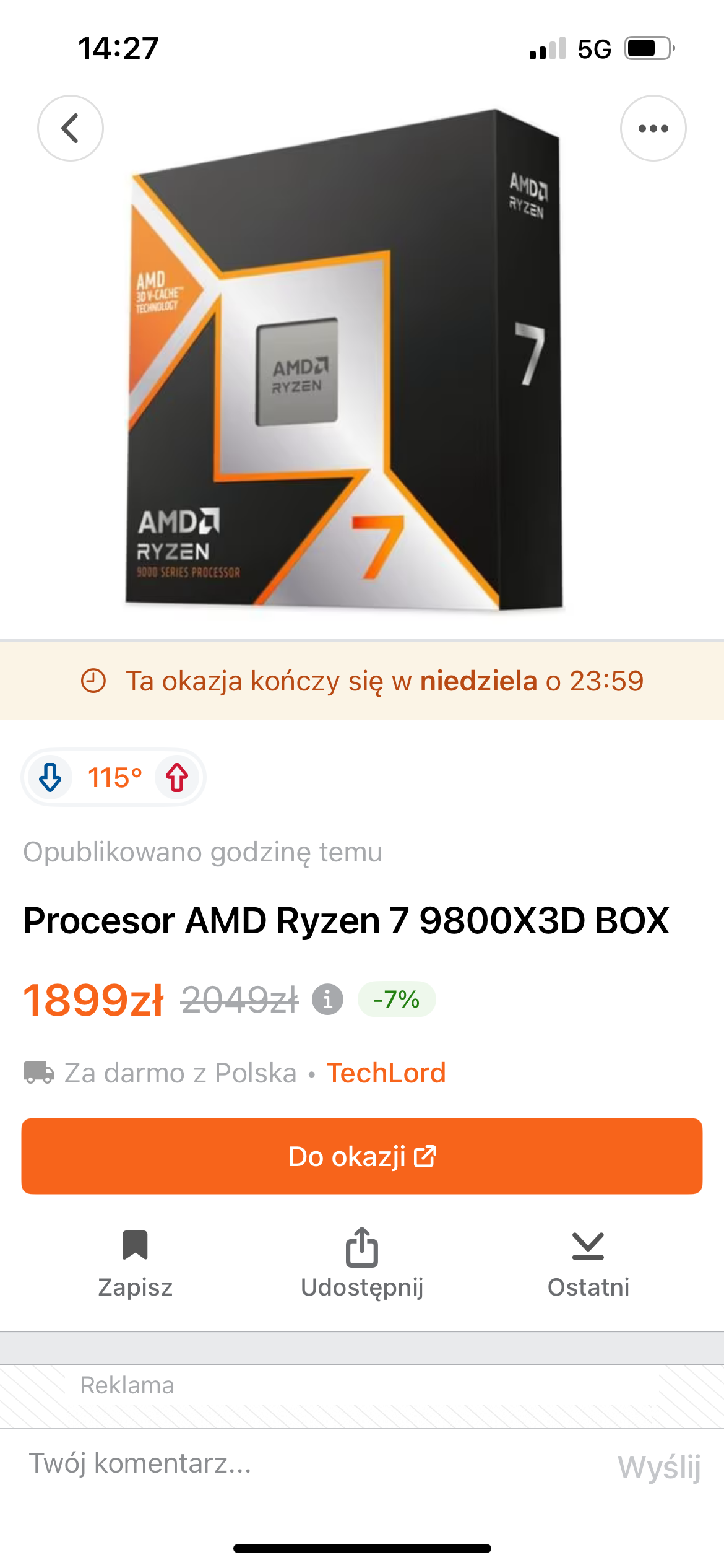 Niedługo chiński czarny piątek i chodź lepszego procesora w ogóle nie potrzebuje, to jak będzie dobra okazja to pewnie się złamie. Mój mroczny pasażer szepczący "kup tego X3D" znowu wygra. :)