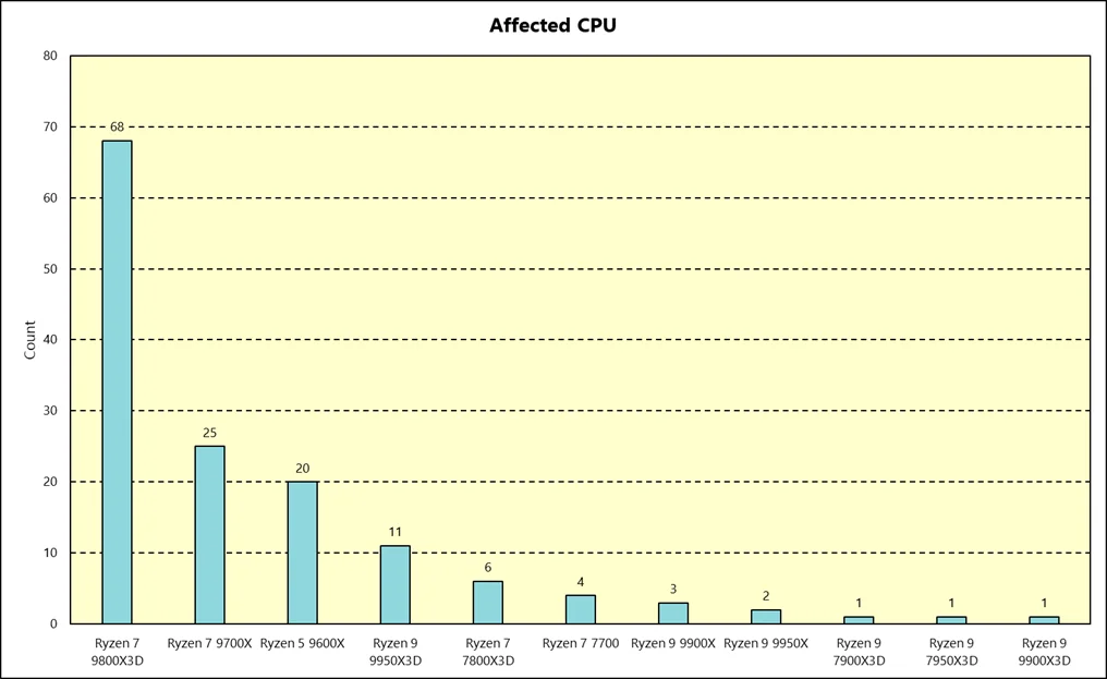 W megathredzie o padniętych prockach na ASRockach zrobili nawet tabelę. Wygląda to gorzej niż myślałem, jeżeli chodzi o procki bez X3D i nawet z serii 7xxx.