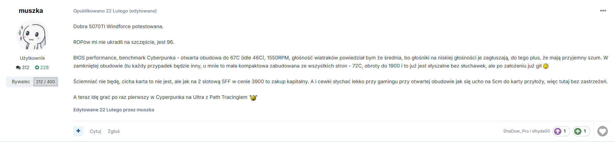 właśnie przeglądałem recenzje 5070 Ti na fps guru pl