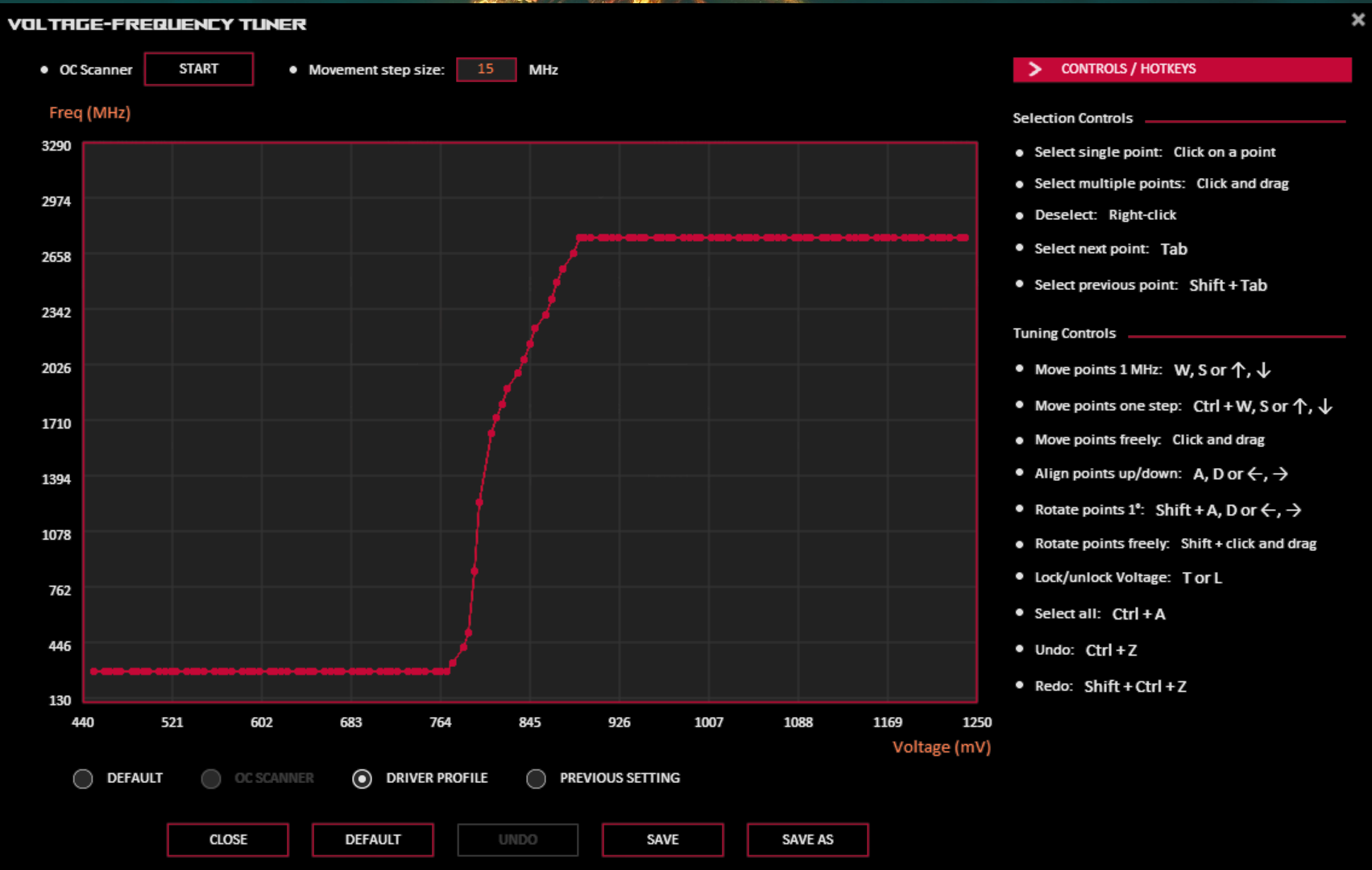 Ja np. tak zrobiłem, że do 0,825V jest fabryka a dopiero reszta w górę aż do 0,925V. Wklejam mój przykładowy profil gdzie w grach mam powyżej 2900MHz dla najbardziej obciążających gierek a bliżej 2950 dla tych lżejszych.