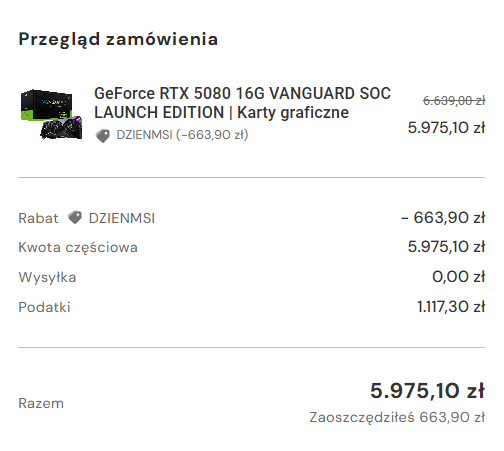 Przyszedł do mnie MSI Vanguard RTX 5080 w cenie 5975.