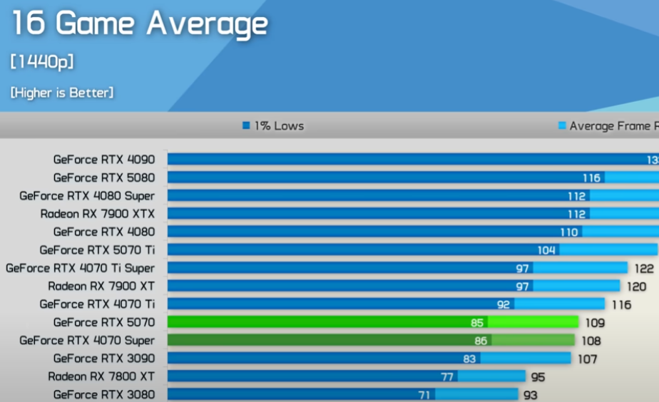 5070 nie jest kartą wydajniejszą od 4070S bo: