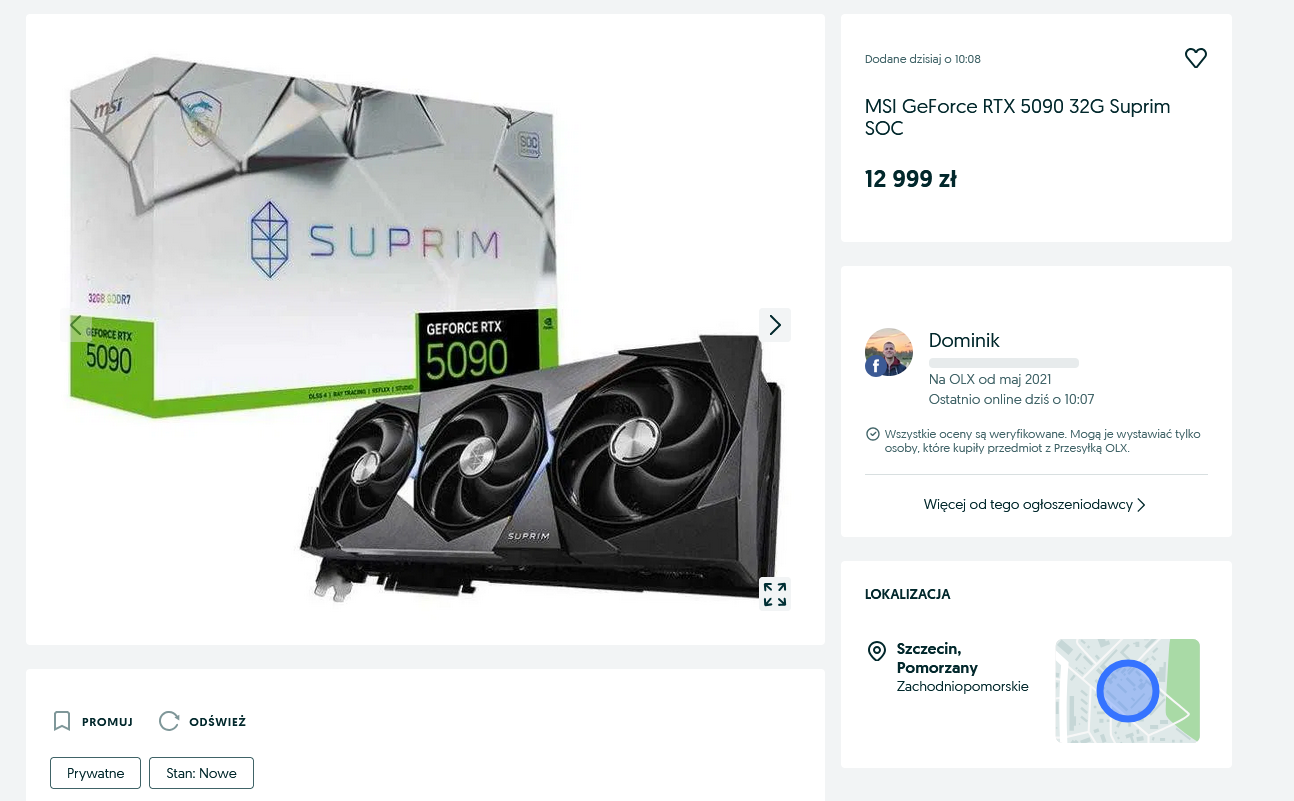 W sumie to nic , zamówiłem go na raty za 14k których nie zdążyłem nawet zacząć spłacać ( wiem drogo ale nie chciało mi się już czekać) z zamiarem spłaty części rat kwotą uzyskaną ze sprzedaży 4090. Ale jak odpaliłem SW Outlaws i zobaczyłem temperatury w okolicach 80 stopni to zacząłem żałować zakupu, nie dość że karta przepłacona to jeszcze gorąca, na szczęście tego samego dnia jak uznałem że zwrócę Palita udało mi się trafić Ventusa więc nie będę musiał szukać karty siedząc na integrze bo 4090 w międzyczasie się sprzedała.