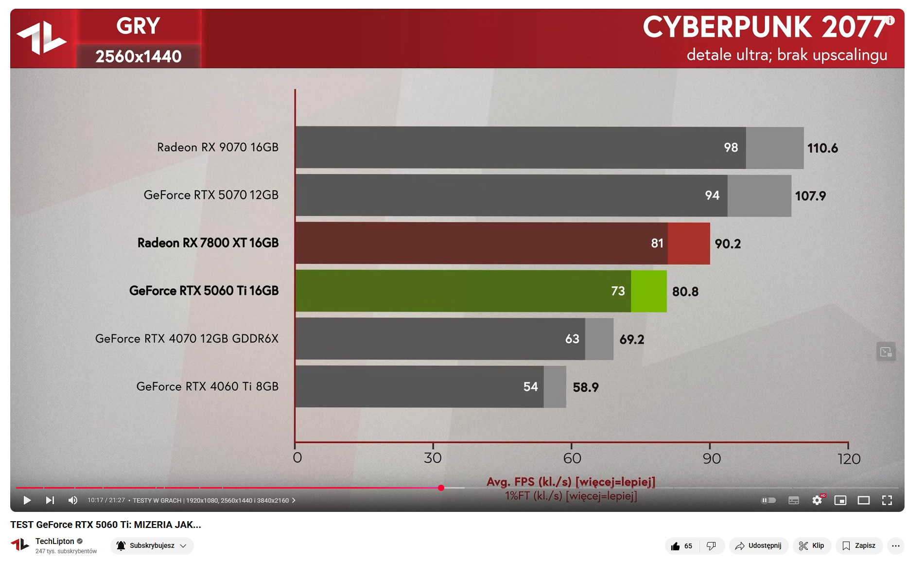 1440p, detale ultra, brak skalowania i 80 FPS na 5060 Ti? To chyba jakieś mikro wymagające miejsce ;) Poza tym coś z tymi liczbami nie halo, 5070 60% szybszy od 4070.