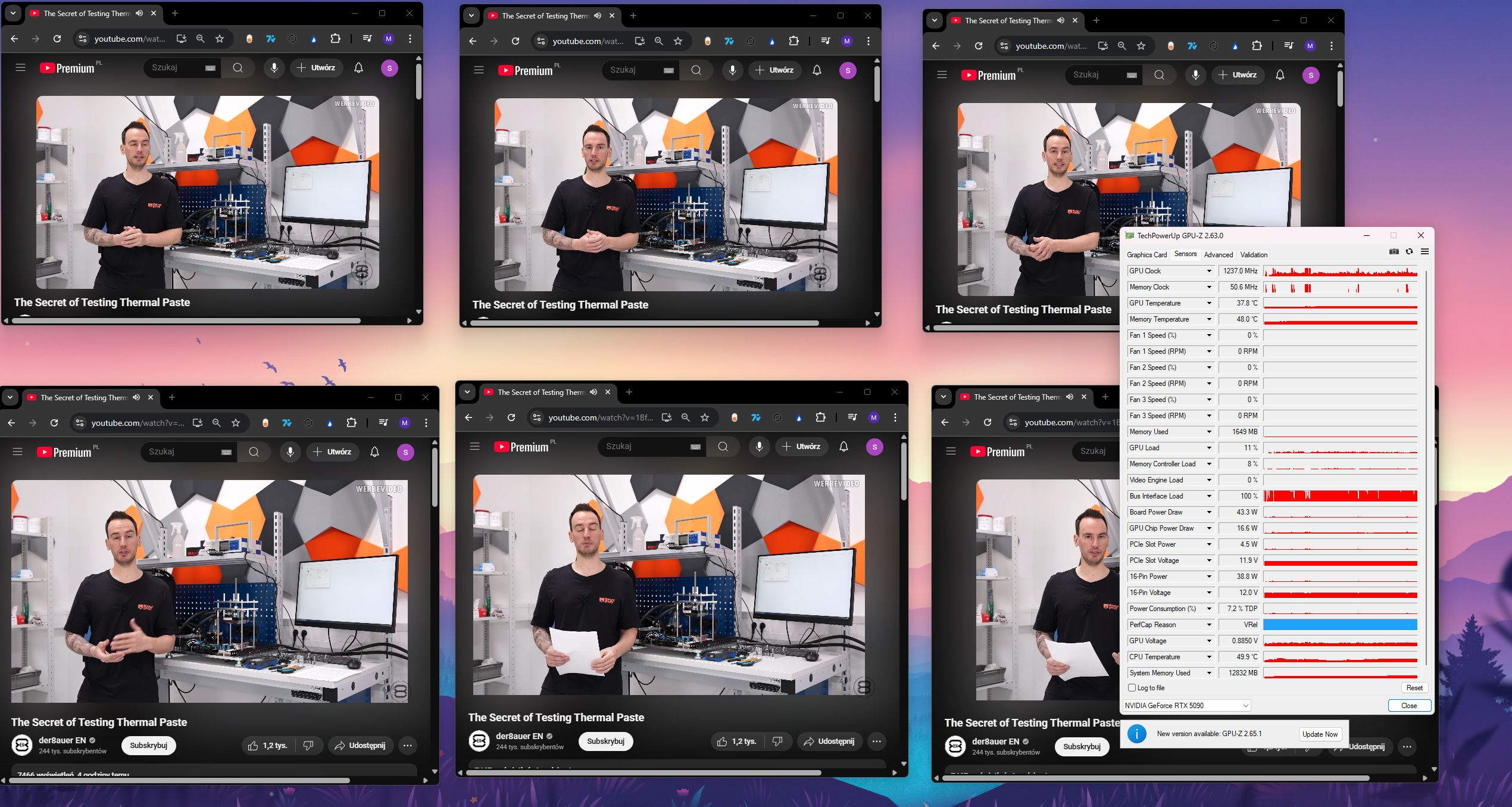 Na razie otworzyłem 14 przeglądarek oddzielnie z youtube / twitch i jest 45-50W. Nie wiem, czy to ma jakieś znaczenie dla karty ile tych wideo jest.