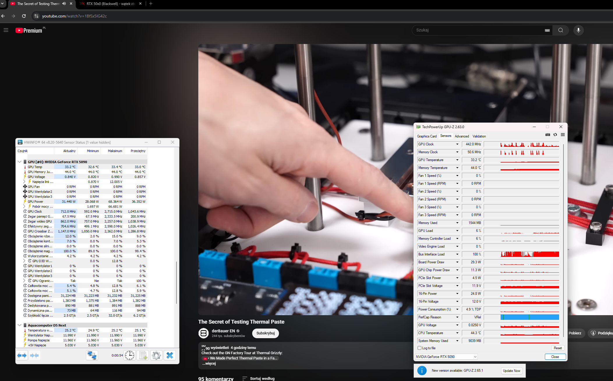 Odpaliłem jeszcze na drugim monitorze twitch i pobór się waha w granicach 35-40W. Z jakimiś pojedynczymi skokami co kilkanaście sekund do około 60W.