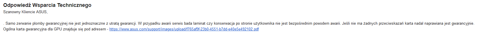 Kilka osób pisało do supportu Asusa (w tym ja) przy okazji wymiany pasty w serii 40x0 i zawsze odpowiadali, że usunięcie plomby nie anuluje gwarancji. Chyba, że coś się zmieniło.