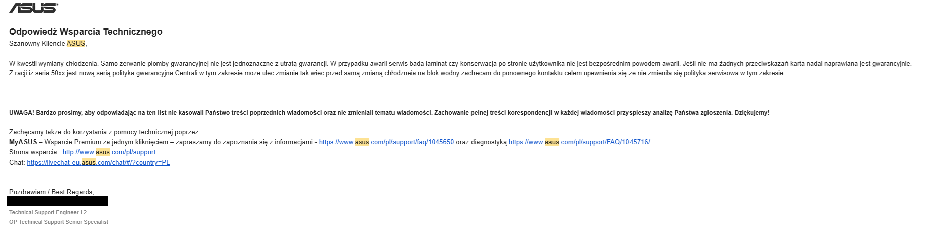 Otrzymałem potwierdzenie od opiekuna produktu oraz producenta ASUS.
