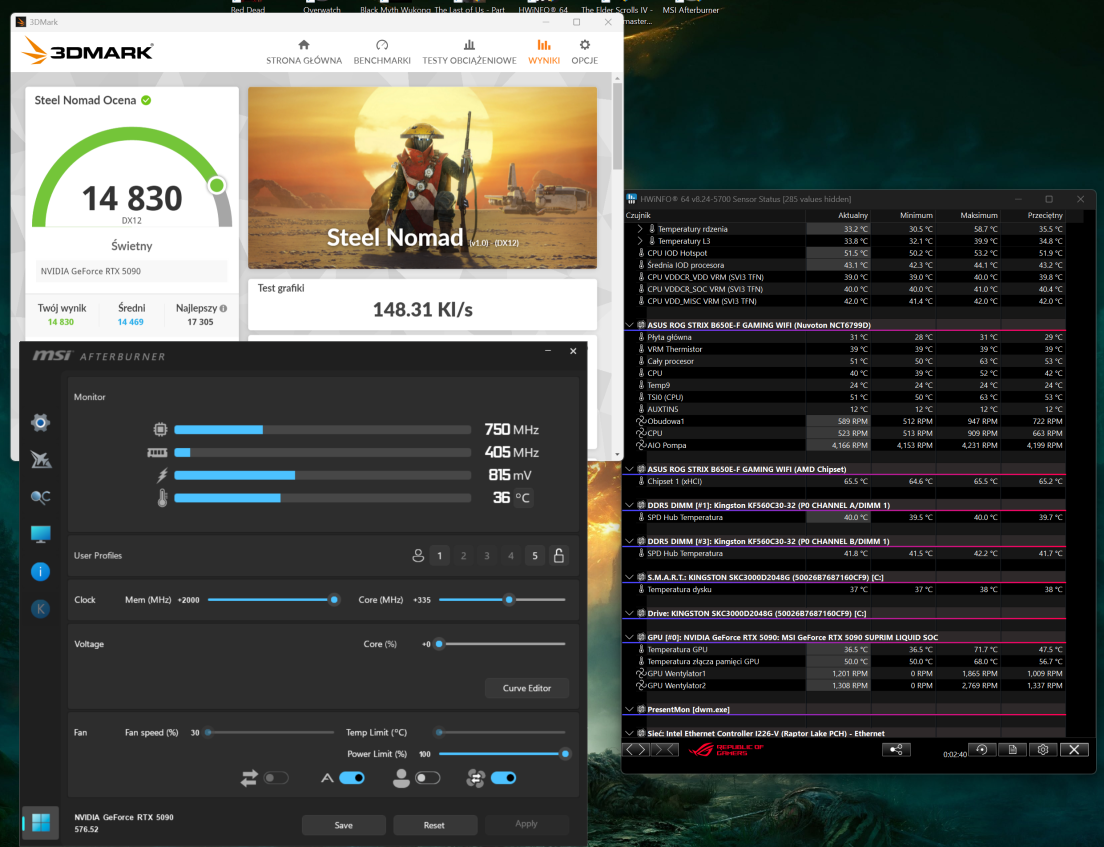- Dalem sobie core + 335 vram + 2000 na testa, wynik w nomadzie i odczyty, no posracie sie ze smiechu, ja posralem sie ze strachu jak mi zaczely wentyle wyc :D