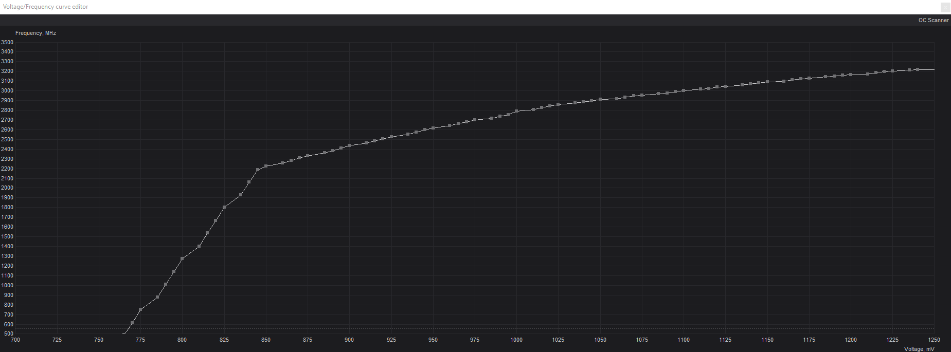 A tak to wygląda na gorszej krzywej: tu max na 0.825v możesz dać 2000Mhz, co efektywnie pewnie przełoży się na 1800-1900Mhz zależnie od binu: