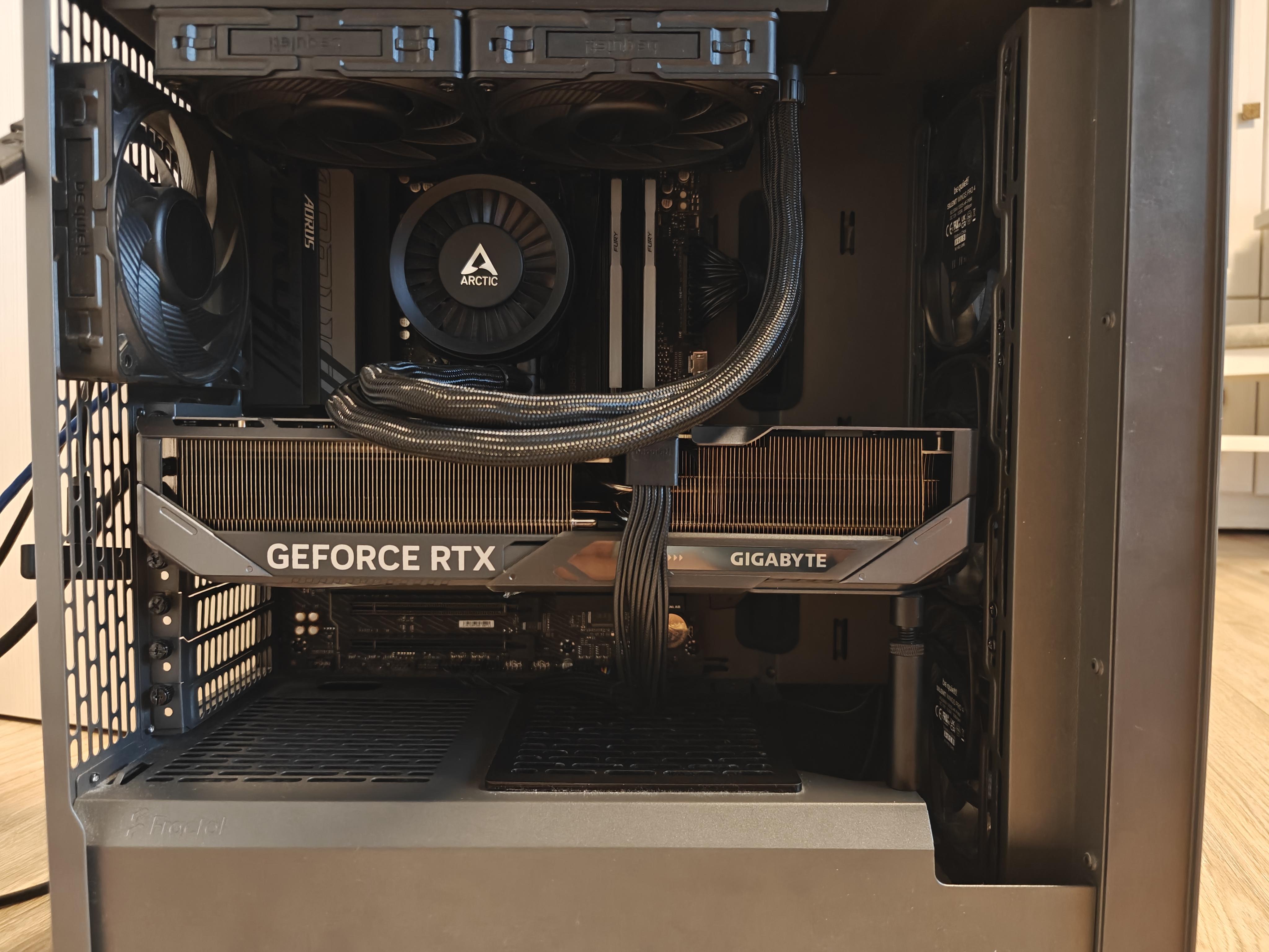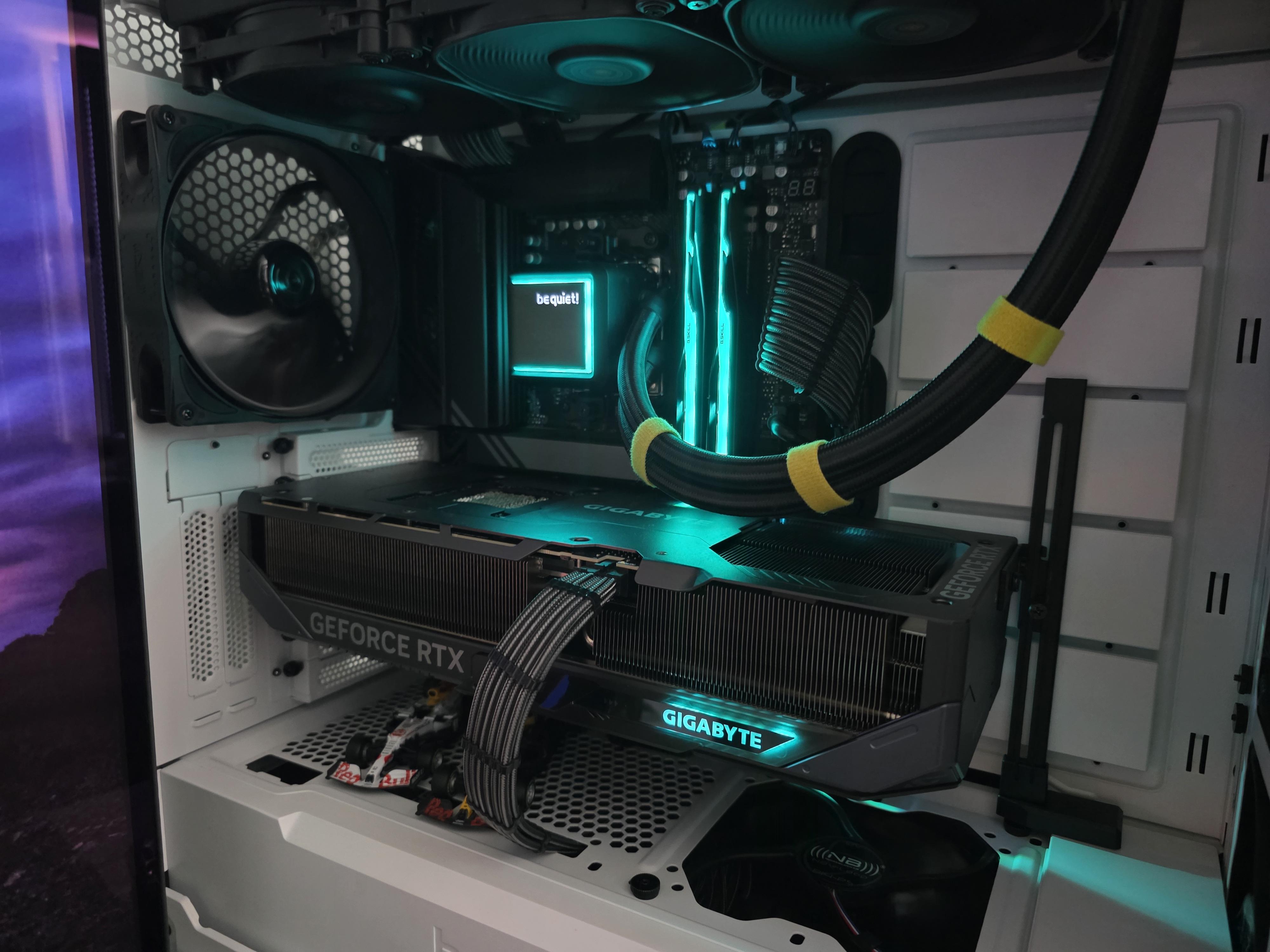 Nowiutki kabel kątowy bo stary to już kilkanaście razy był wyciągany a przy 5090 to nie ma co ryzykować, podpórka zamontowana, folia ściągnięta. Pobawiłem się w UV i przy benchmarku cyberka -100w +6fps, w steel nomad +500 punktów. Tak więc myślę, że teraz można grać.
