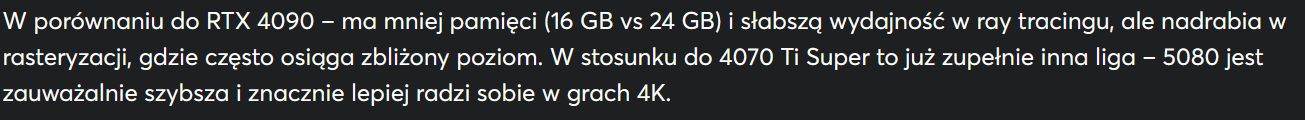 ... no to Daniel ma rację. JA też nie widzę sensu dopłacać aż tyle do 5080 wzgl. 5070Ti. Gdyby 5080 miało więcej VRAM i monitoring hot-spot to prędzej :konik:(taki żarcik, tak na serio, to po prostu nie warto dopłacać aż tyle, do karty która jest tylko trochę szybsza, bo parenaście procent i nic więcej)