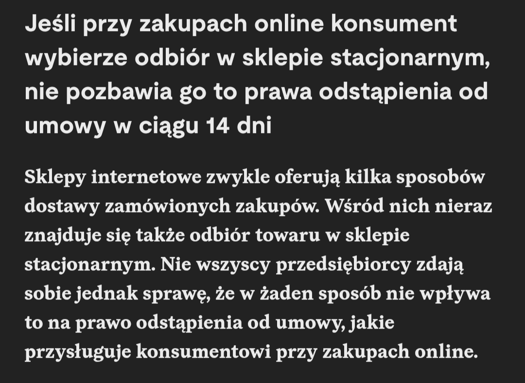 Ale sklepy kombinuja jak tu nie przyjmowac zwrotow towaru.