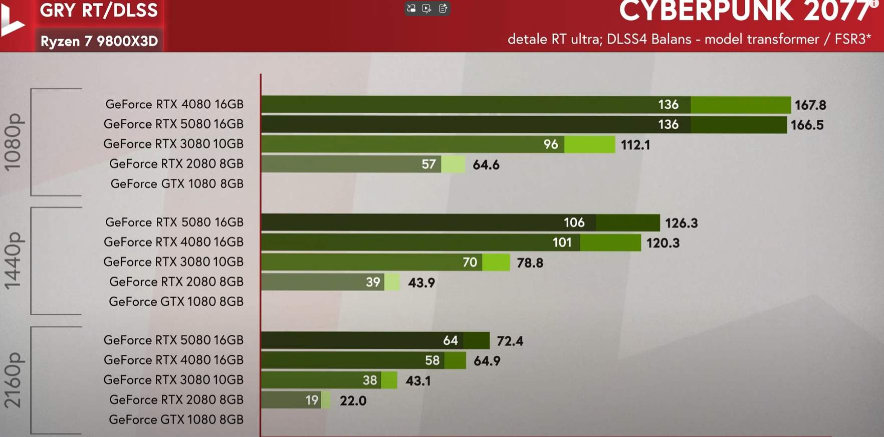 Wzrost generacyjny miedzy 4080S, a 5080 to padlina i tu nie ma co dyskutowac ;)  I majac to gpu nie bede udawal, ze jest innaczej.