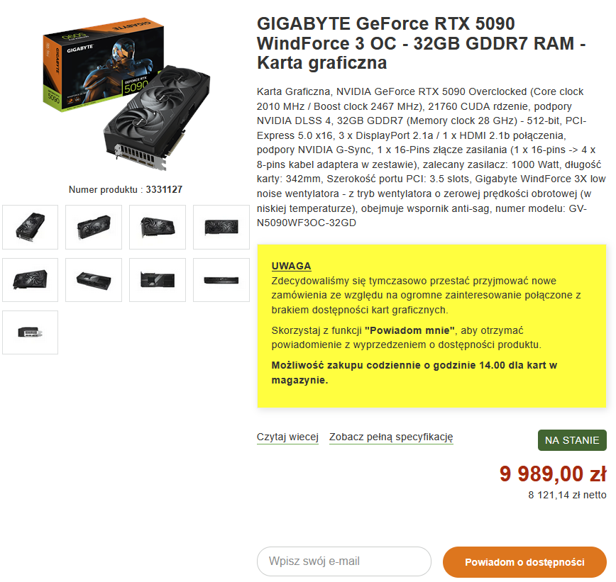 Z 5090 już od ~3 miesięcy robi się mniej modeli na sklepowych półkach i ceny rosną, szczególnie tych modeli z niższymi MSRP.