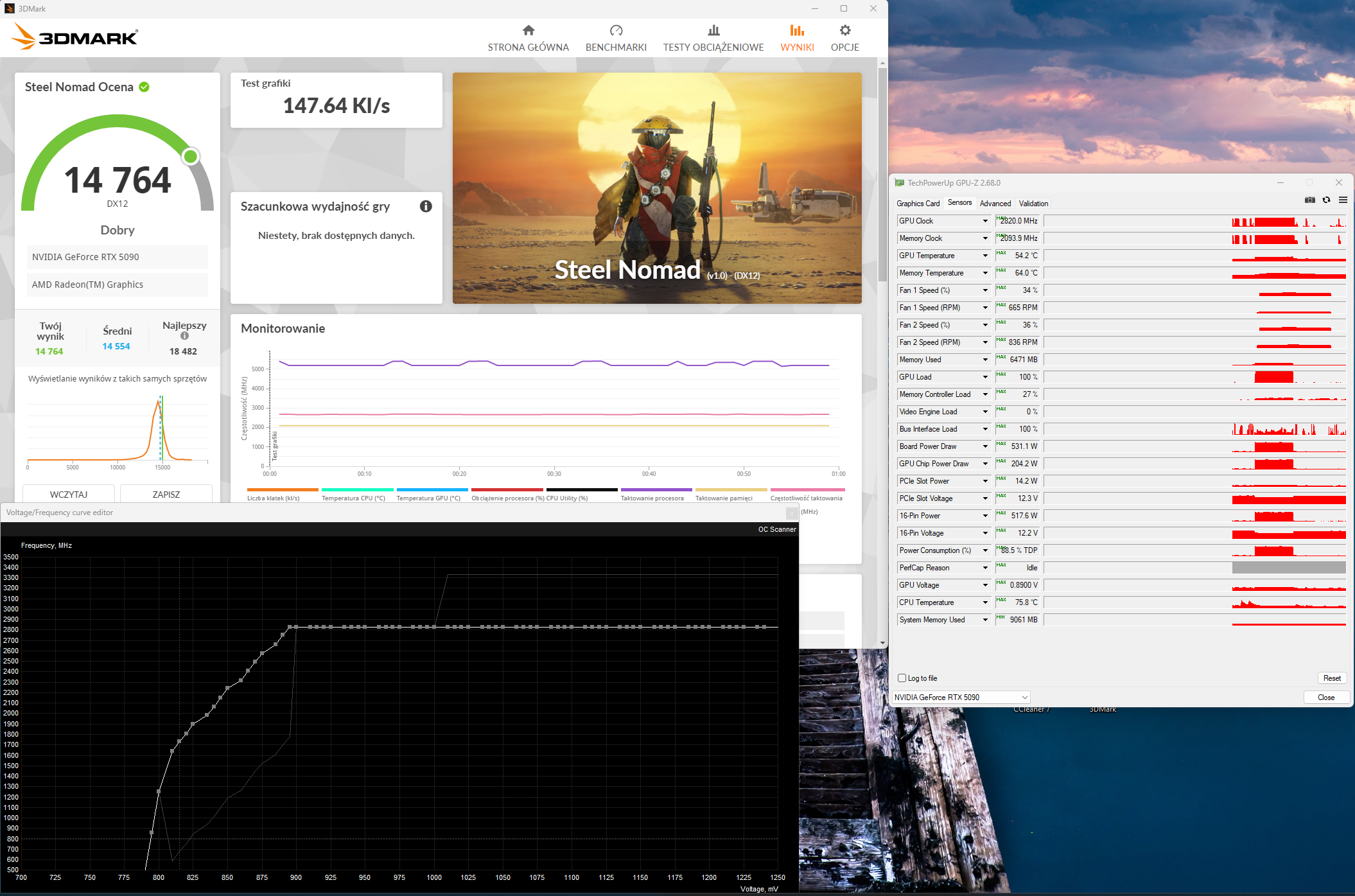 Ja pisałem już wyżej. Wynik 16723pkt zrobiłem na napięciu ~935-945mV ze stabilnym boostem zegara 3030-3045 z przebitkami do 3060, a na samą końcówkę testu zegar wchodził na 3142MHz przy napięciu 975mV.