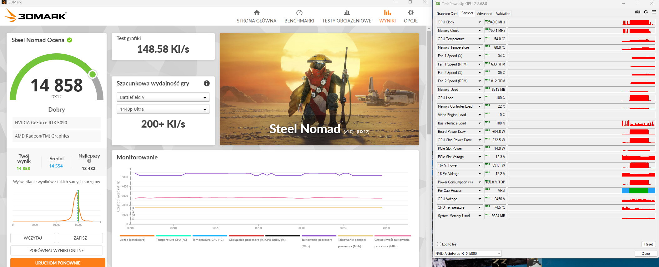 Ja mam ustawiony UV na 920-925mV i zegar się utrzymuje na poziomie 2805-2820Mhz+ w najbardziej wymagających scenariuszach w 4K (Cyberek), w mniej wymagających leci oczywiście wyżej w okolice 2900MHz+, ale zależy też od gry, bo Wukong potrafi iść wyżej niż Cyberek, ale już nie pamiętam dokładnie ile to bylo. Potrafię grać cały dzień i nic nie wywala. Nie widziałem u siebie nigdzie więcej niż 460W poboru w grach, a często jest niżej. Jest cichutko i chłodno, i też trafiła mi się sztuka bez świerszczy praktycznie, bo tyle co tam ich jest to trzeba nasłuchiwać. Nie wnikam już w ogóle w cyferki. Po prostu gram albo bawię się ComfyUI.