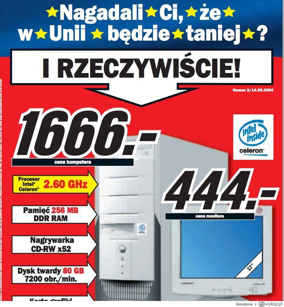 Także jak ktos kupił niedawno nowa karte z serii blackwell to na pocieszenie tak wygladały ceny w 2003r, gdzie ta minimalna placa jeszcze przed wejsciem do UE to było 800zł. Karty kosztowały też swoje, a z tych 800zł ile zaoszczędzano 200?250zł? Jak ktos mial troche ponad 1000zł to pewnie nieco wiecej.