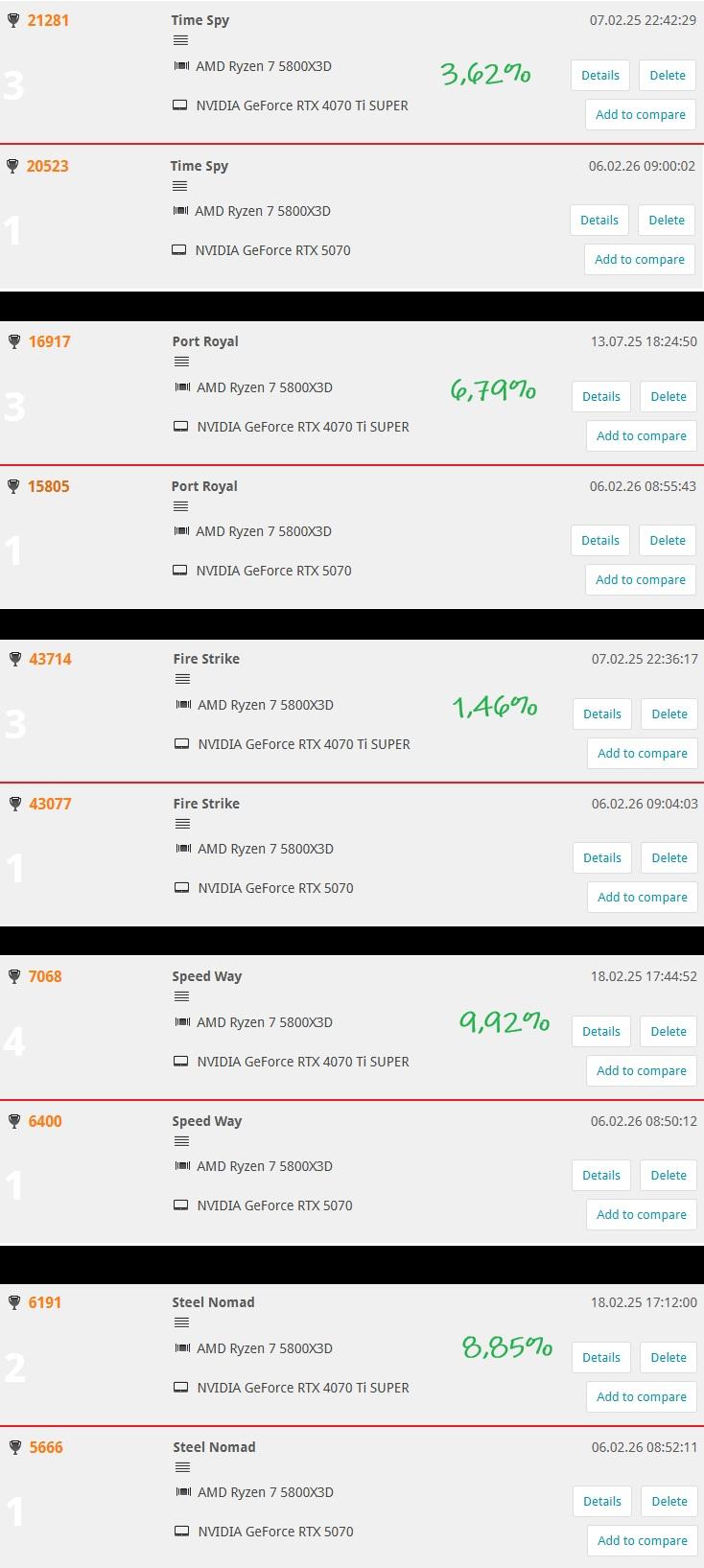 O ile 5070 12GB po UV/OC jest wolniejsza od 4070TiS 16GB po UV/OC przy moich sztukach kart.