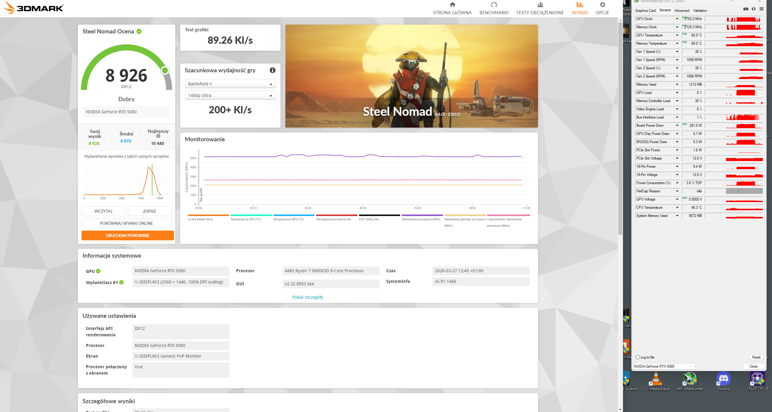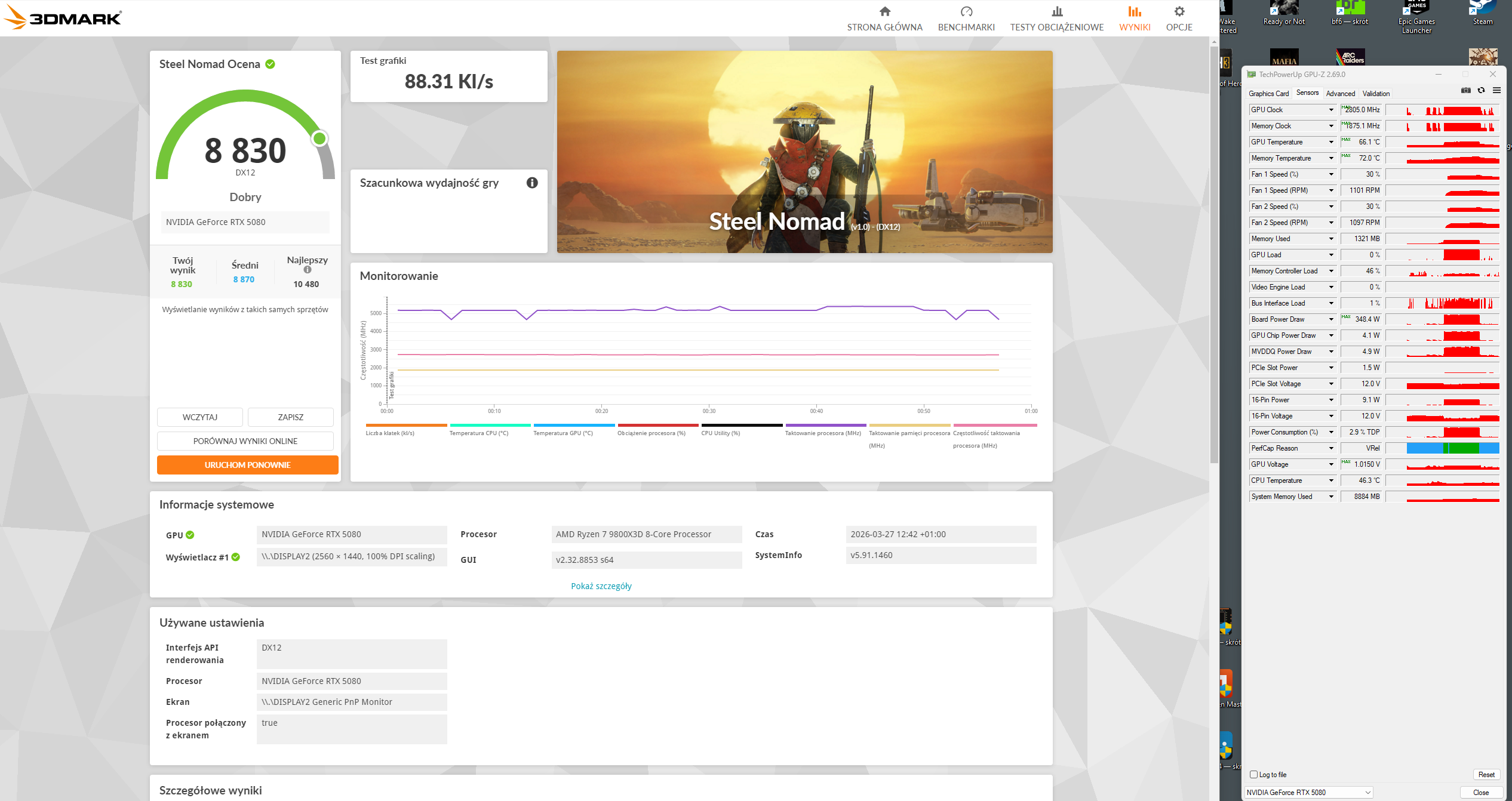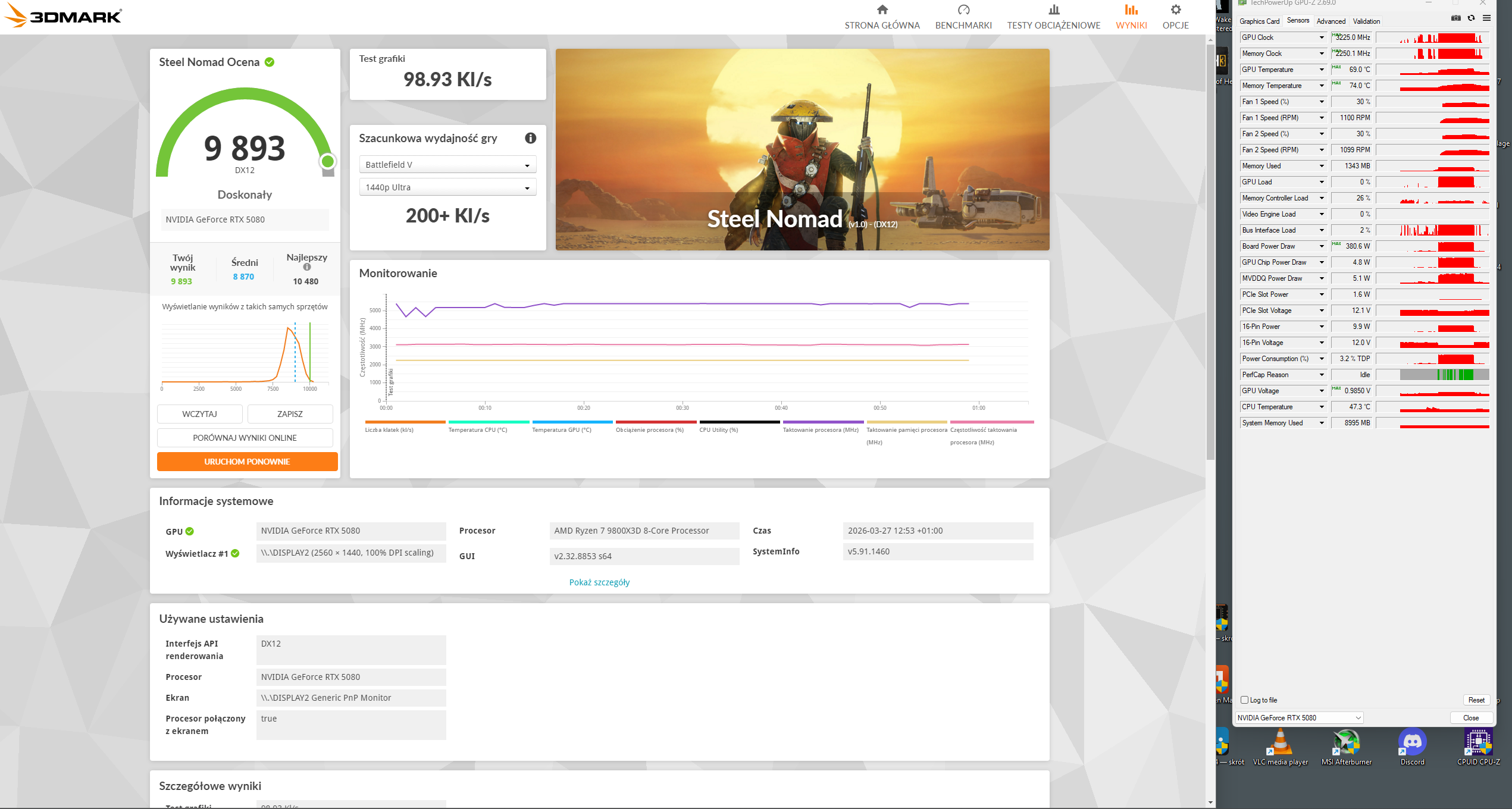 Przy tym PL moje GPU jest jednak sporo slabsze, Przy 380W to raczej jest 9600-9650pkt tak jak napisalem.