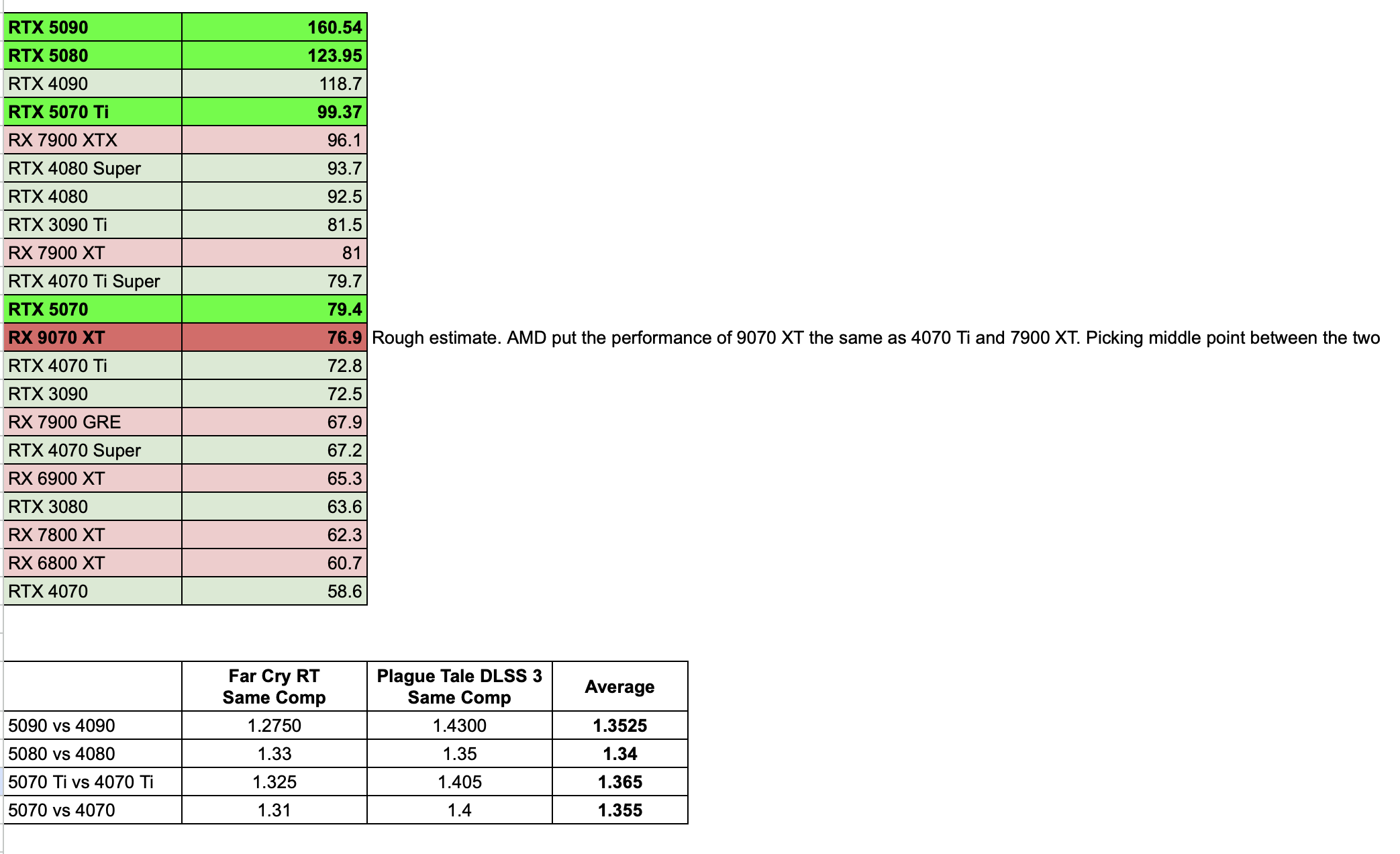 To są wartości ze slajdów nvidii z prezentacji, tylko ktoś zadał sobie trud, żeby dokładnie zmierzyć wysokość słupków w pikselach. Więc tak, są to najbardziej wiarygodne informacje jakie na chwilę obecną dostaliśmy, od samej NV. 5090 +27% vs 4090 w FC, +43% w Pladze z DLSS.