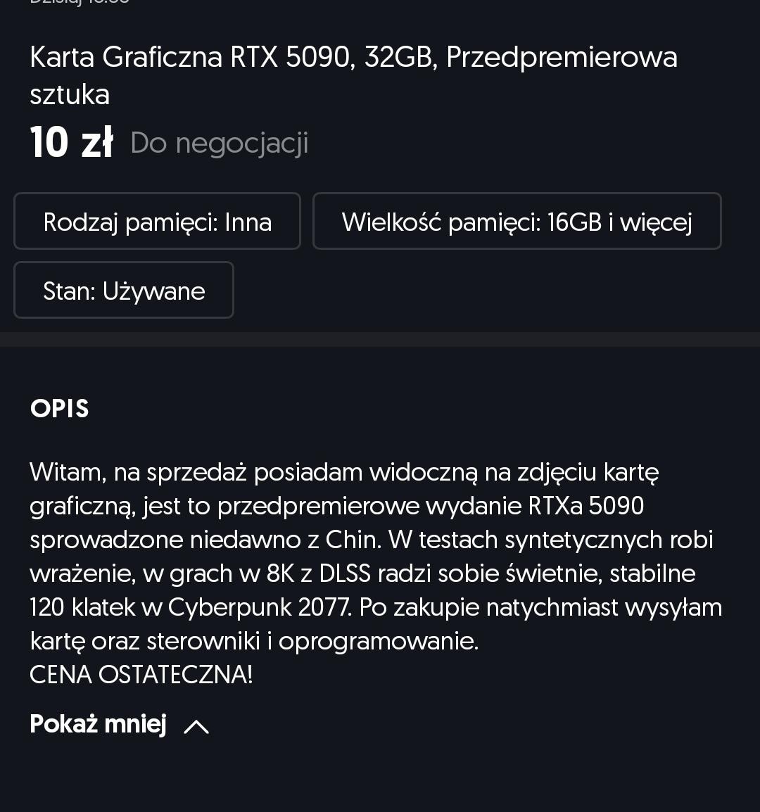 To wszystko ta bankowo jakaś zasłona dymna, potem okaże się że 5080 przegania 4080 o 135%, a my będziemy ponownie wielbić Kurtasa. Albo zrobimy z niego Ku(r)tasa...