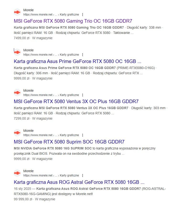 RTX 5080 Suprim SOC na morelach - 6 493,87 zł.