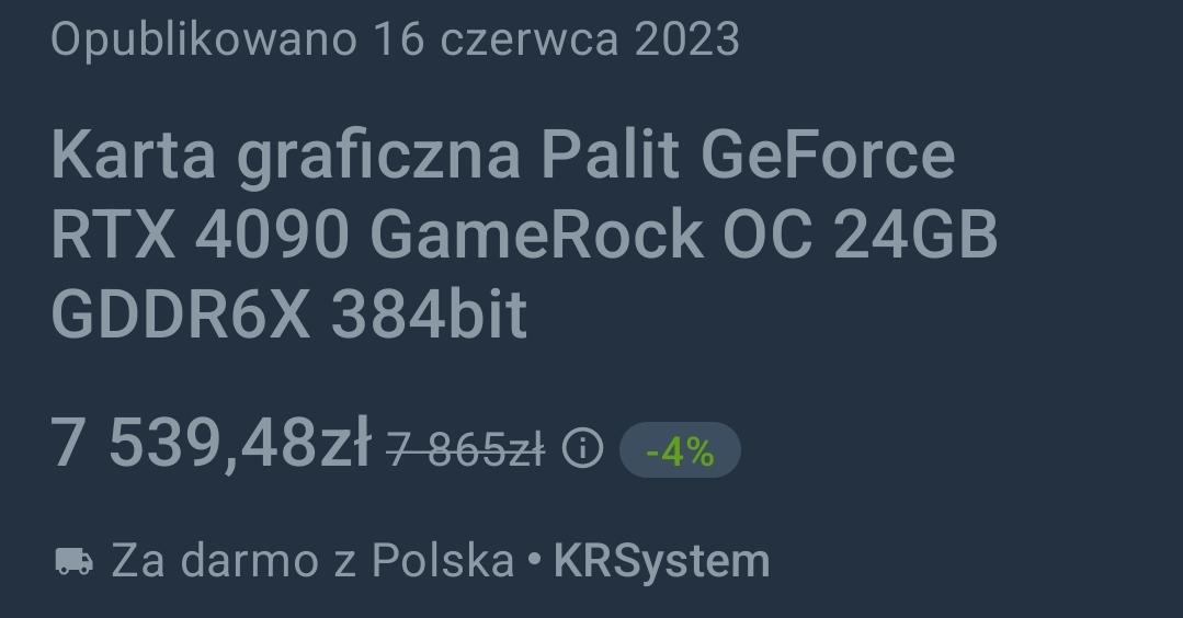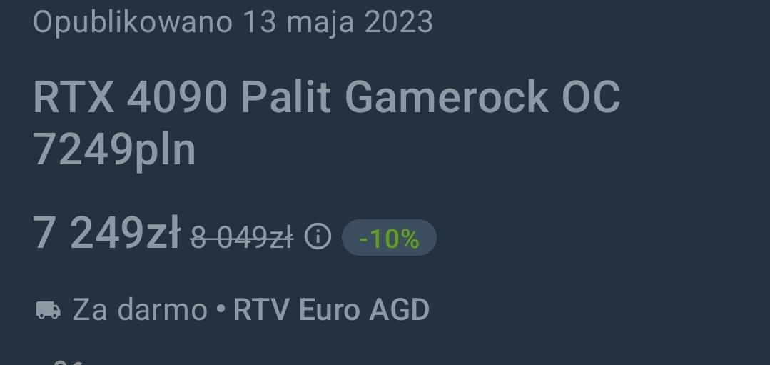 A pamiętacie na nieżyjącym forum jak były przepowiednie, po premierze 4xxx, że 4090 miało do wakacji kosztować nie pamiętam ile, 7kzl? 😅