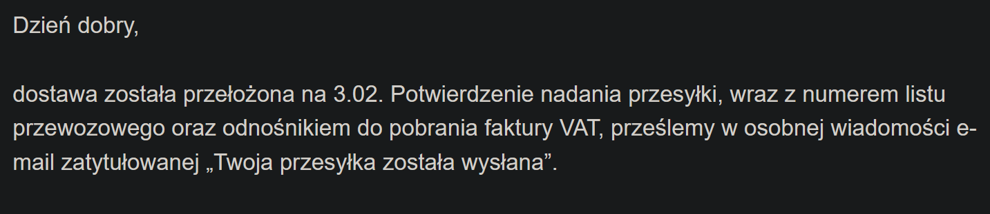 Ale miej tez pretensje do swojej dumy, ze np maja towar pozniej niz konkurencja u której zrezygnowales z zakupow.