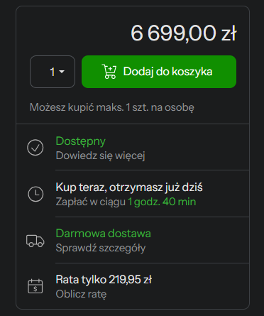 Ale Ty serio myślisz, że gdybym miał jakikolwiek inny wybór to kupiłbym w X-kom? Tylko tam mi pokazało kup teraz to kupiłem.
