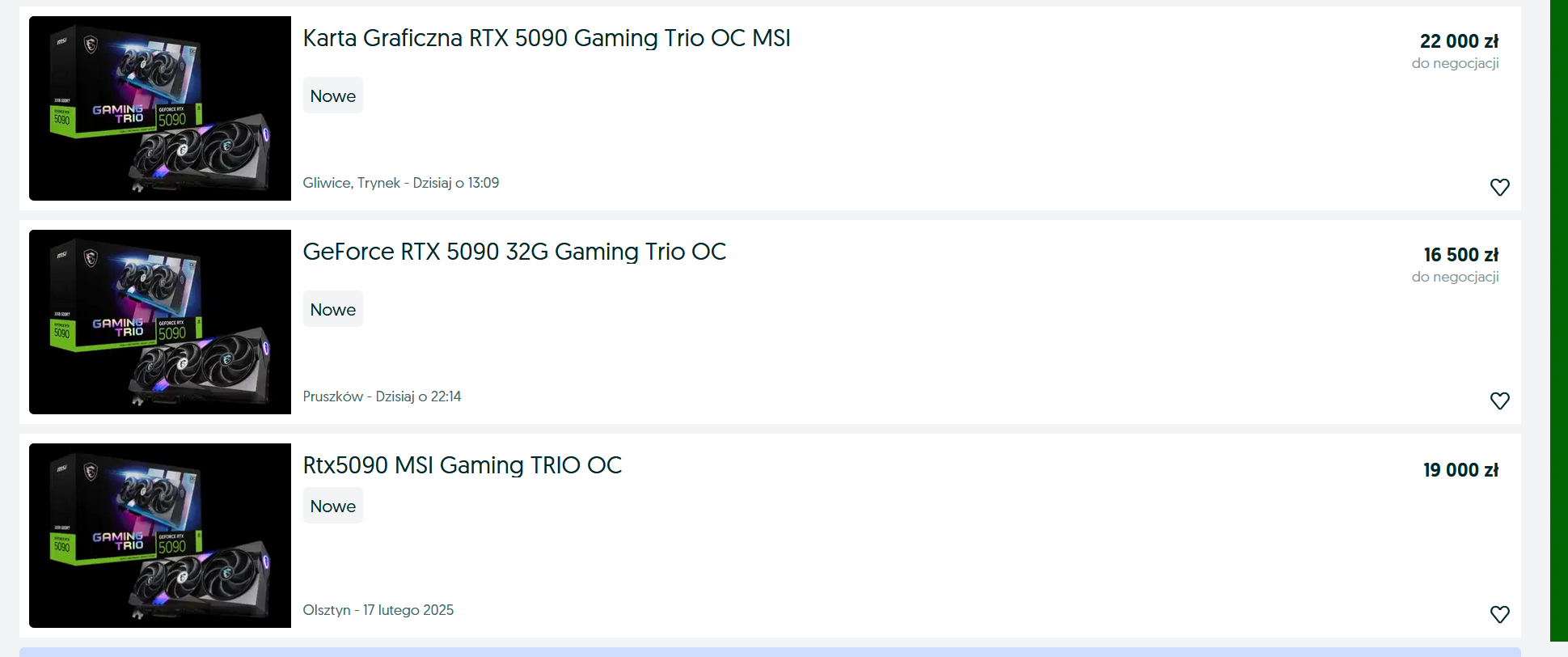 Za tydzień ? Za 2? Już się pokazują 5090 za 12k z hakiem, ale mnie mały skok wydajności nie kusi za bardzo, za to niepokoi pobór mocy w świetle bubla na zasilaniu.