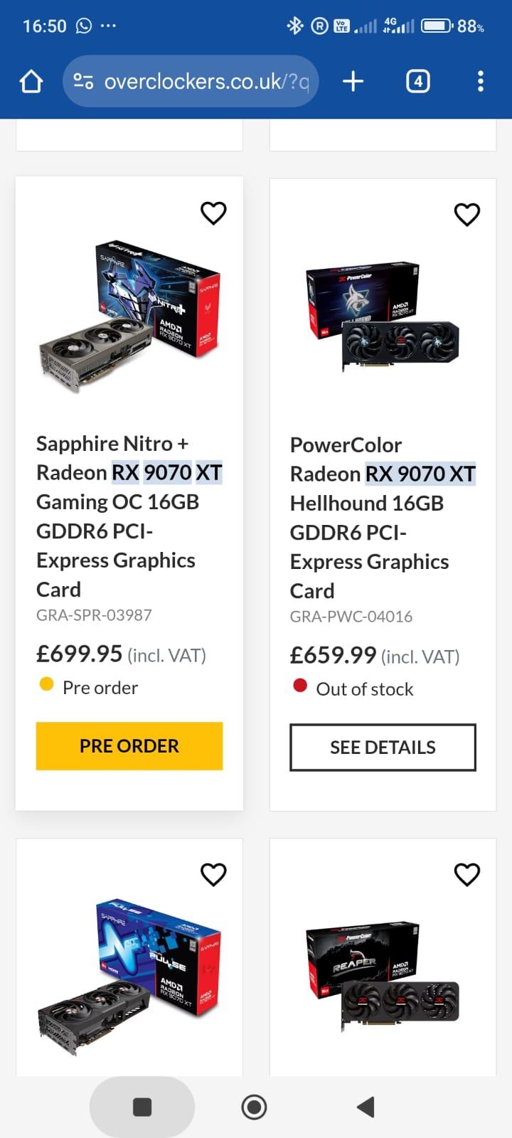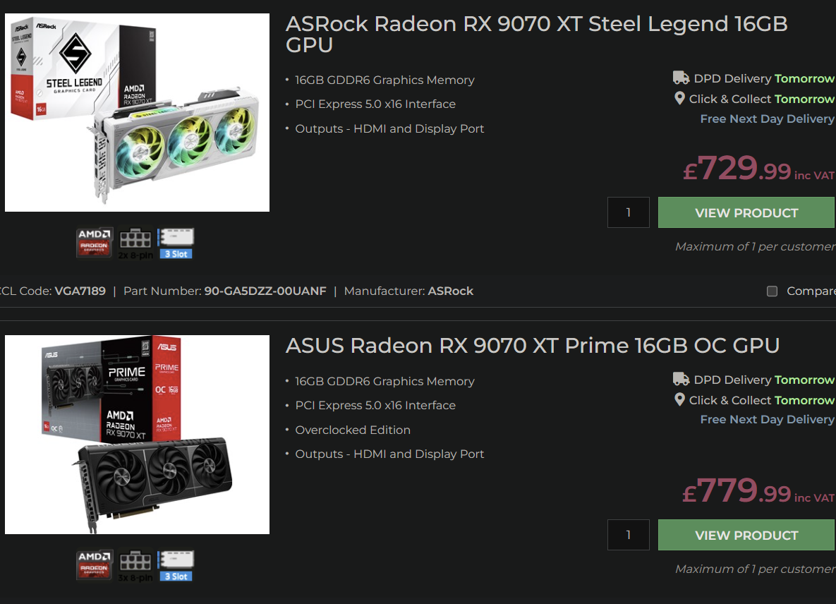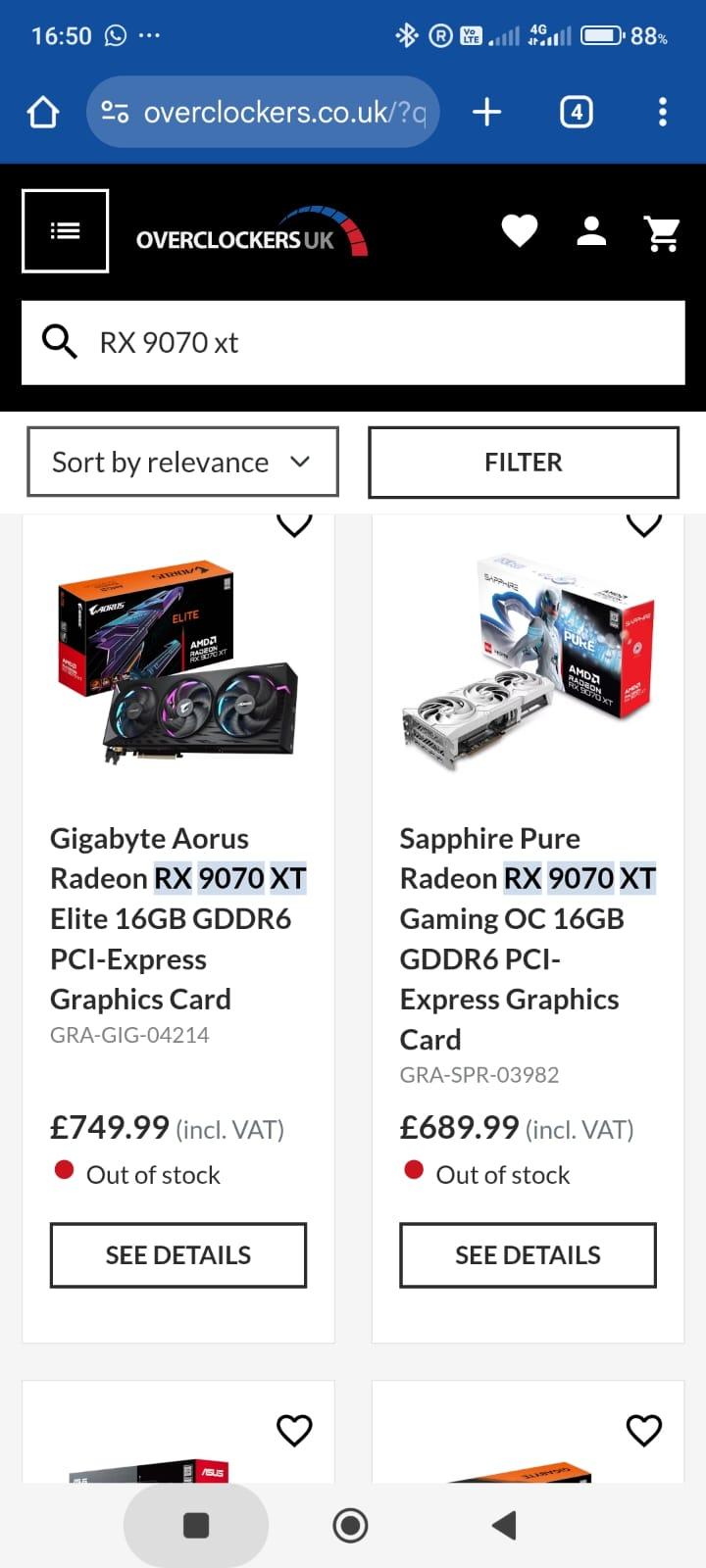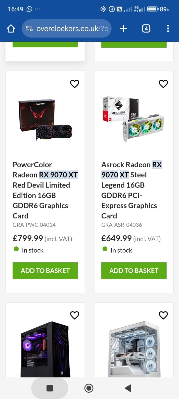 Na CCL UK są dostępne od ręki 9070XT w skalperskich cenach, ale i tak o niebo niżej niż to co wrzucono na ebaya.