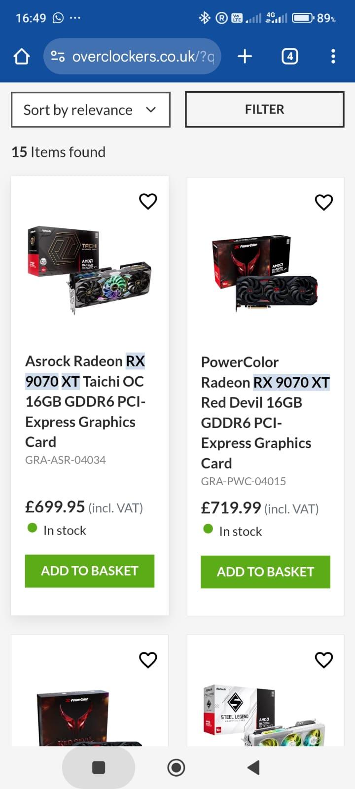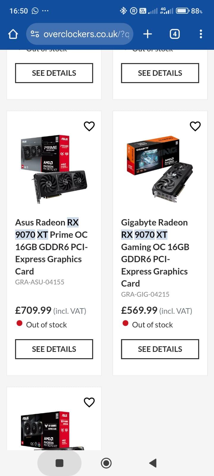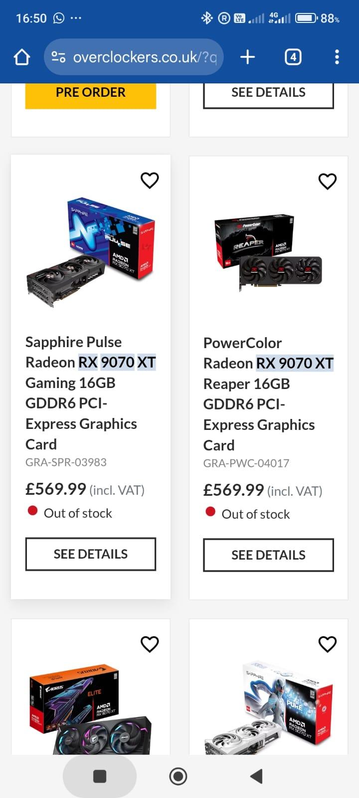 Na CCL UK są dostępne od ręki 9070XT w skalperskich cenach, ale i tak o niebo niżej niż to co wrzucono na ebaya.