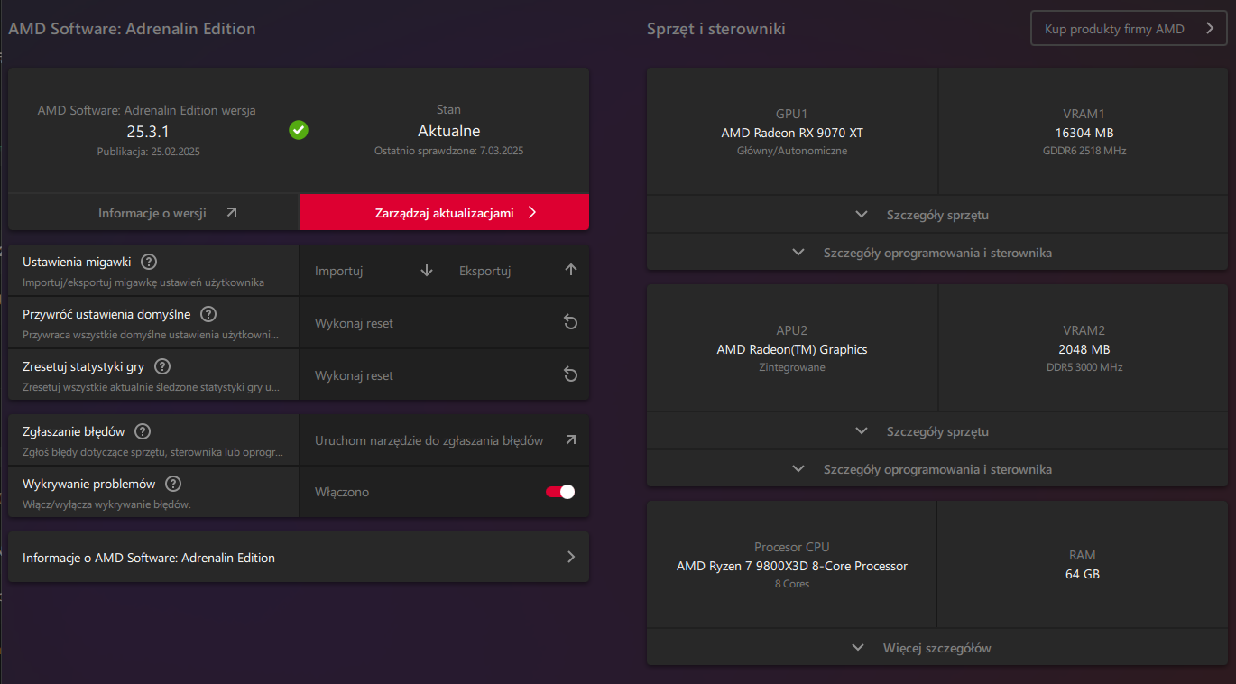 Już działa po restarcie. Ogólnie to będę musiał się ogarnąć co i jak, bo ostatnio Radka miałem jakoś w 2009 roku w laptopie, od tamtej pory tylko Nvidia, więc póki co nie mam pojęcia co i jak z tymi sterami i Adrenalin.