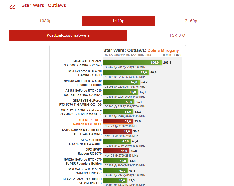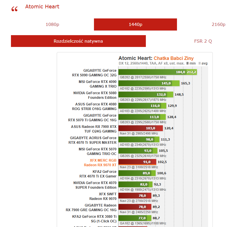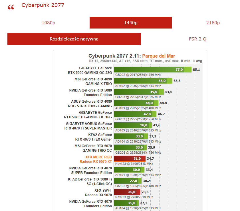 Nie, zwykłą 4070 w 1440p. RX9070 nie powinien kosztować więcej niż te 2000-2200zł i dopóki nie spadnie do tej ceny jest dla mnie kompletnie nieopłacalny. Nie ma się co ekscytować, ze AMD poprawiło mocno RT, bo dalej jest bardzo słabo nawet w stosunku do serii 4000.  Myślę, że 9070 będą szybko lądować w outletach.