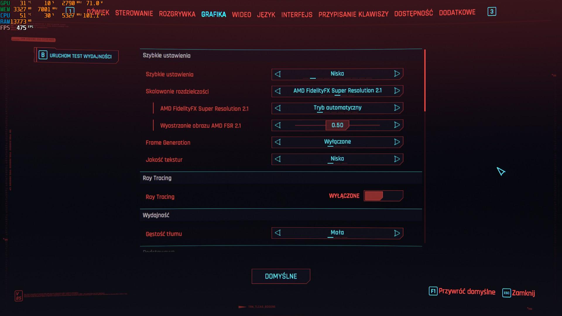 Test wbudowany CP2077, tez 1080p: