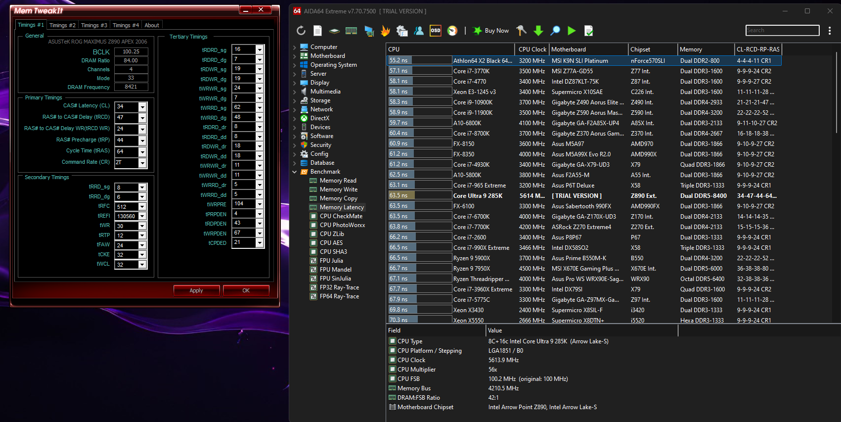 A tu ciekawostka - 8400 cl34 i wyniki jak na am5 z 9950x3d :)
