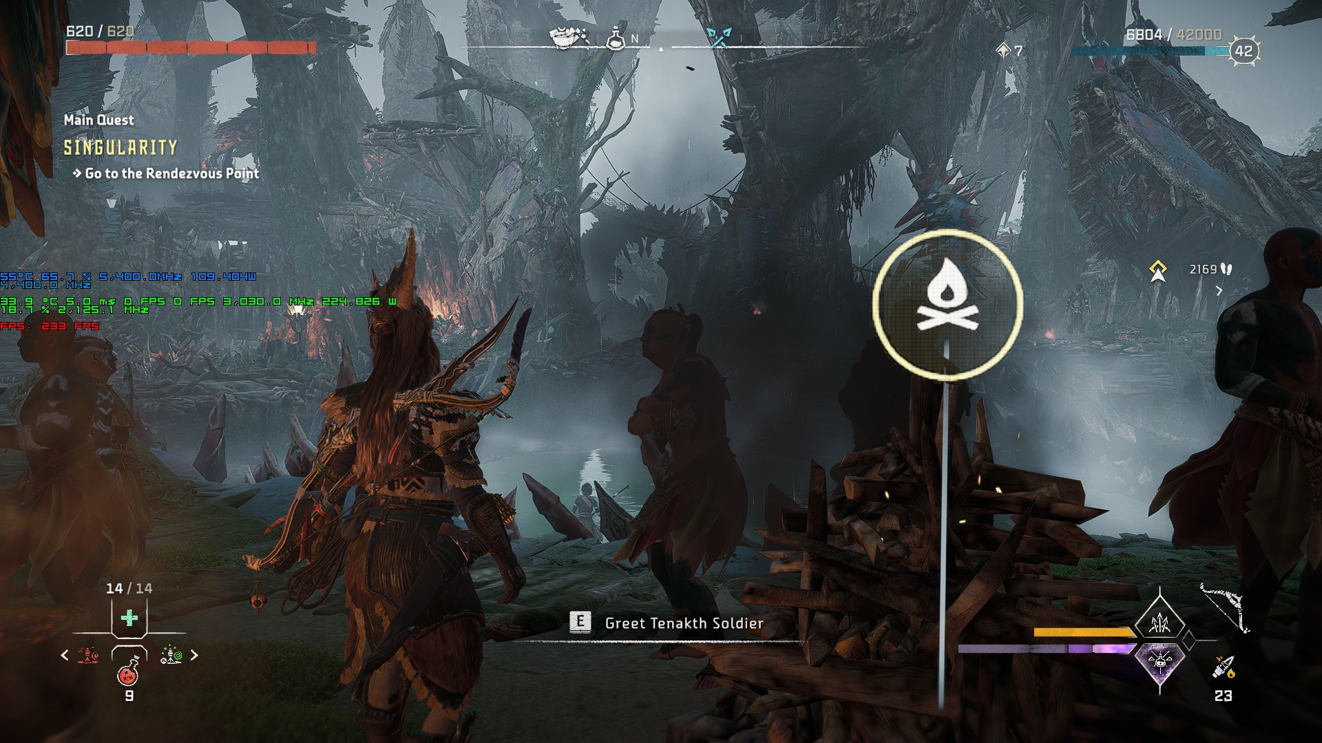Jeżeli chodzi o to moje miejsce testowe, to tam trzeba sprawdzać FPS w niedługim czasie po wczytaniu save, ponieważ ilość FPS zależy od pory dnia, w nocy jest mniej NPC.