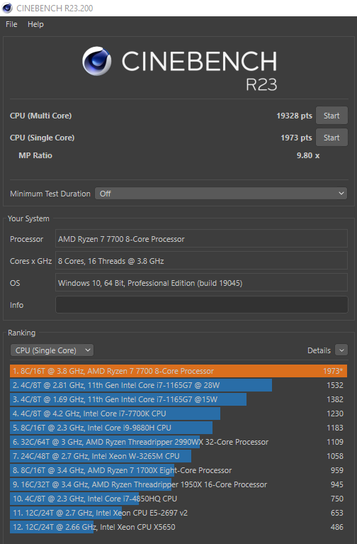W Cinebenchu R23 single core jest wtedy 1981 punktów.