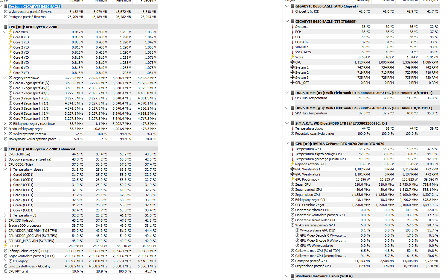- mem 6000 JEDEC (CL48 / 1.1V), SoC na 1.15V = nie śmiga  (zaczyna wywalać błędy po ~10 sekundach na domyślnym profilu w TM5)
