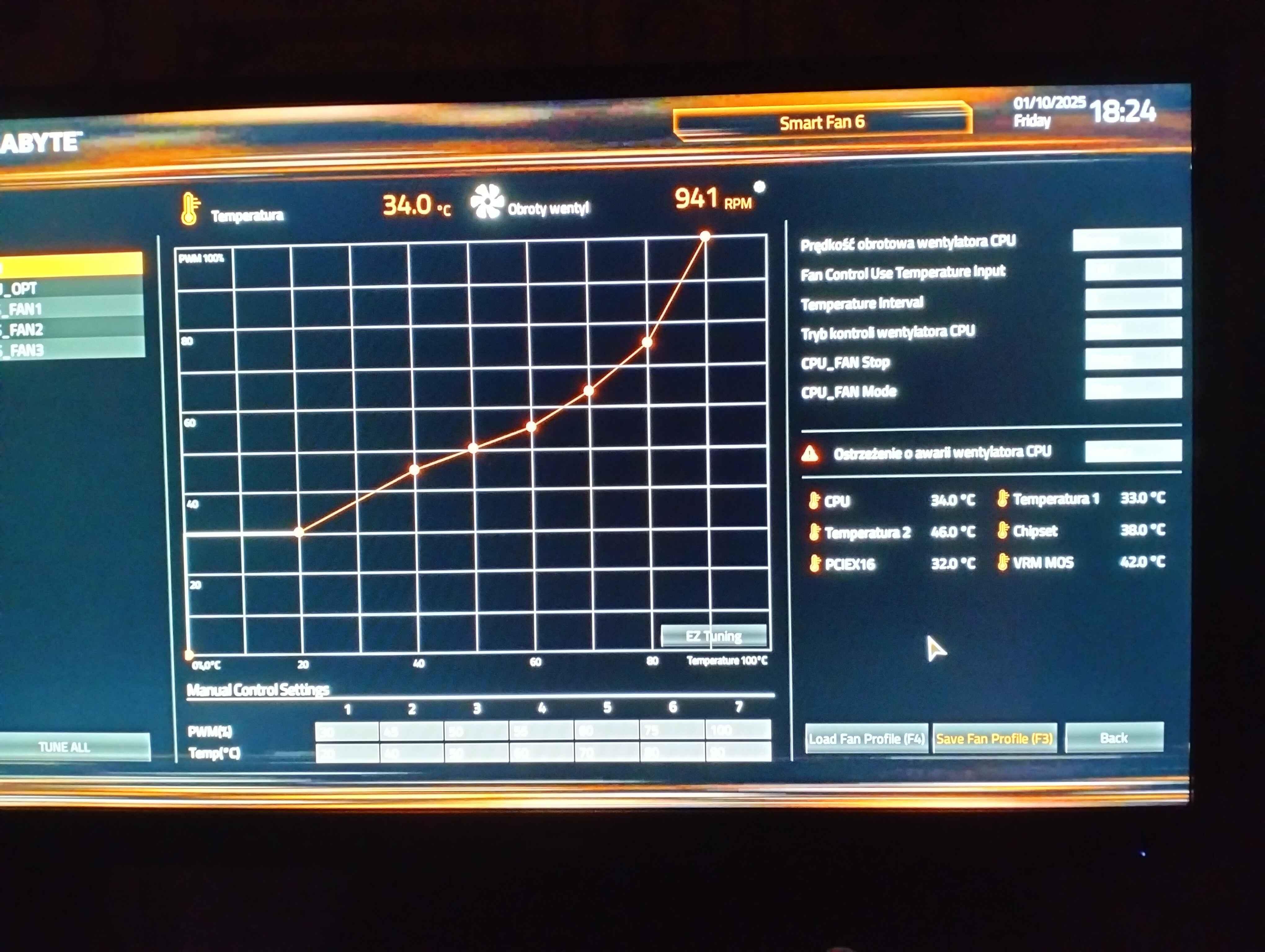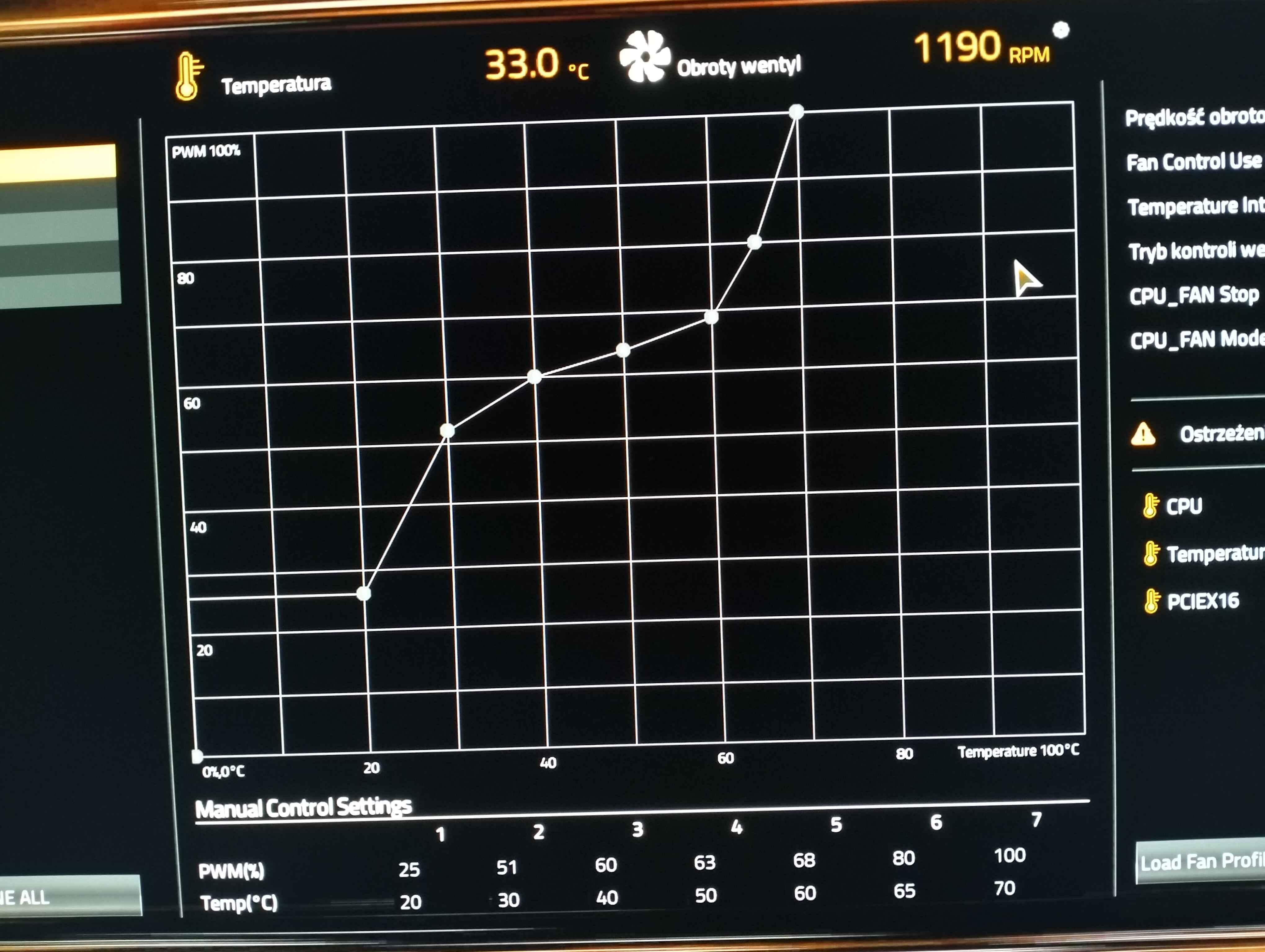 Też musiałem zrobić sobie własną krzywą dla wentylatora CPU, bo gotowa "silent" dawała 100% przy temperaturze 80 stopni. Tak się składa, że grając w Mafię I Edycja Ostateczna temp. procka falowała pomiędzy 60 i 80 stopni i tak samo falował wentylator na CPU i było po prostu głośno. Zrobiłem tak, że przy 85 stopni obroty są na 70%.