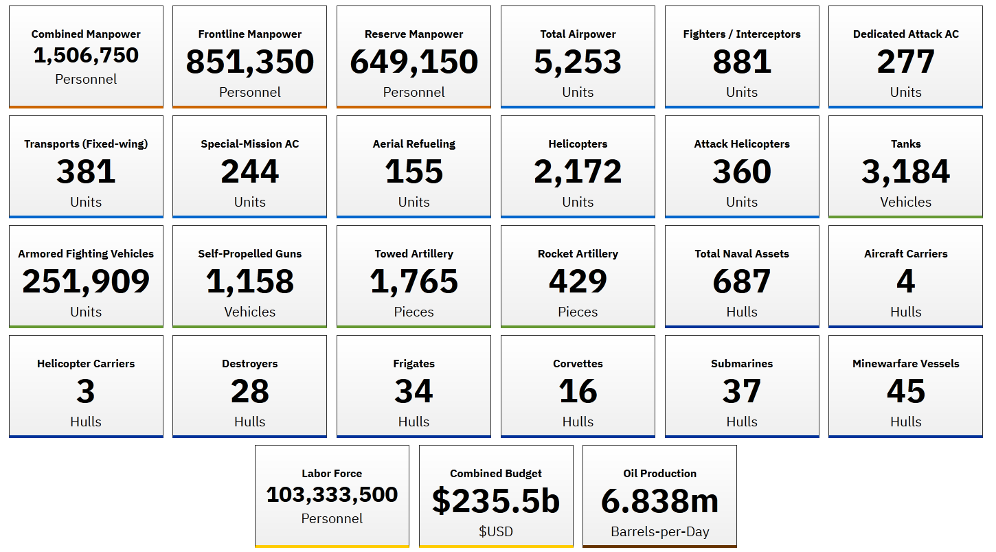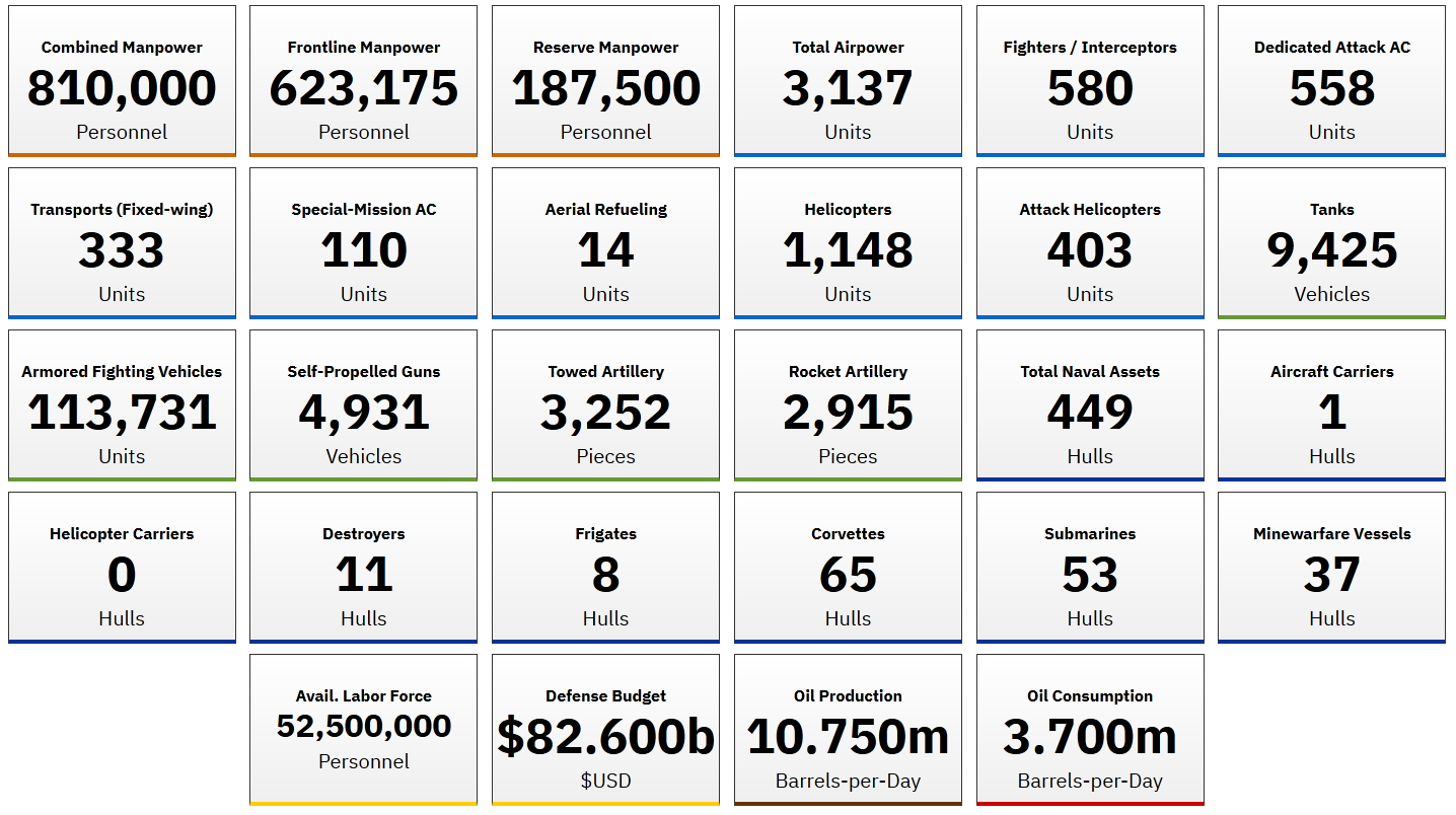 Może nie te dane skopiowałem, brałem z tej stronyhttps://www.globalfirepower.com