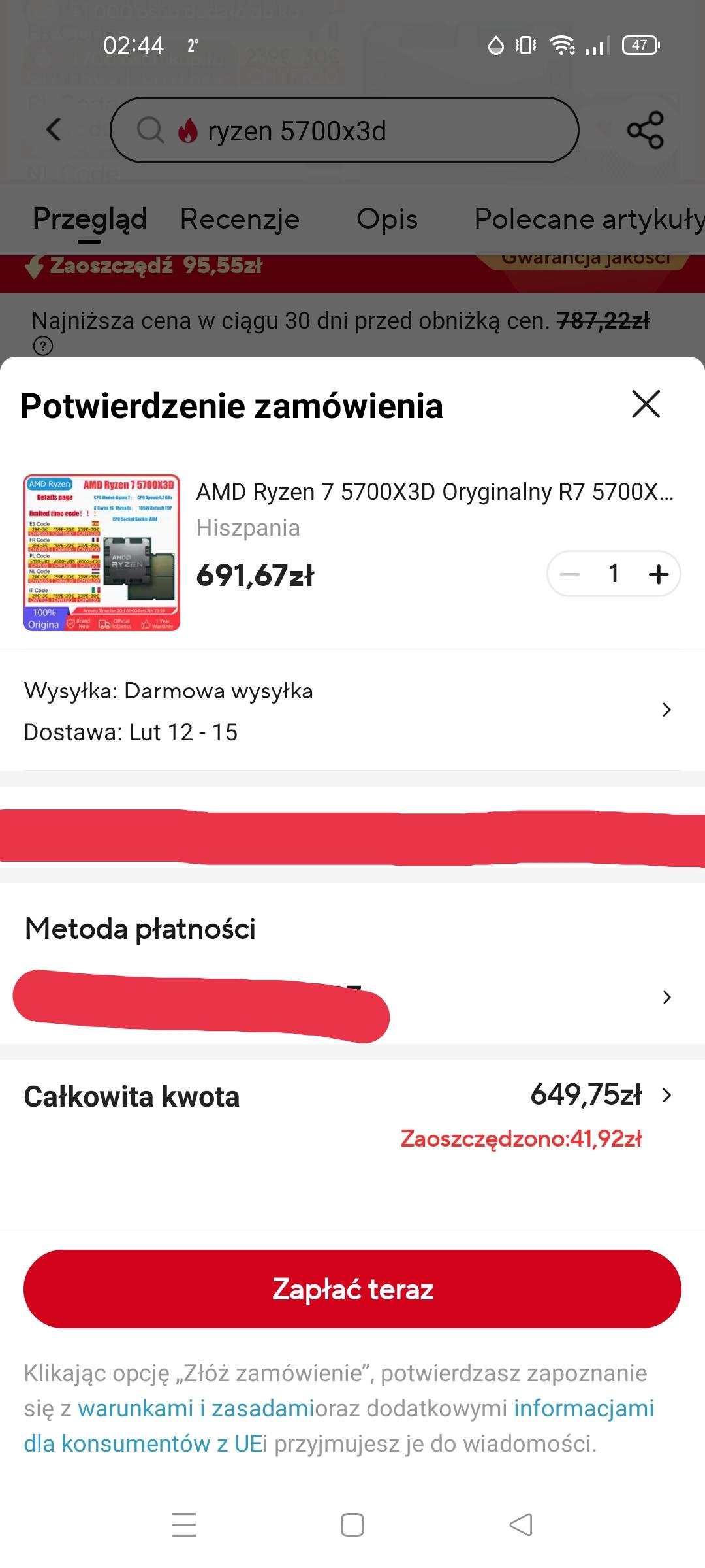 Cena spadła do 597 złotych po aktualizacji kursu z rana ale nie da się opłacić zamówienia xD